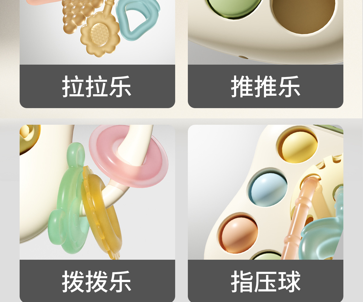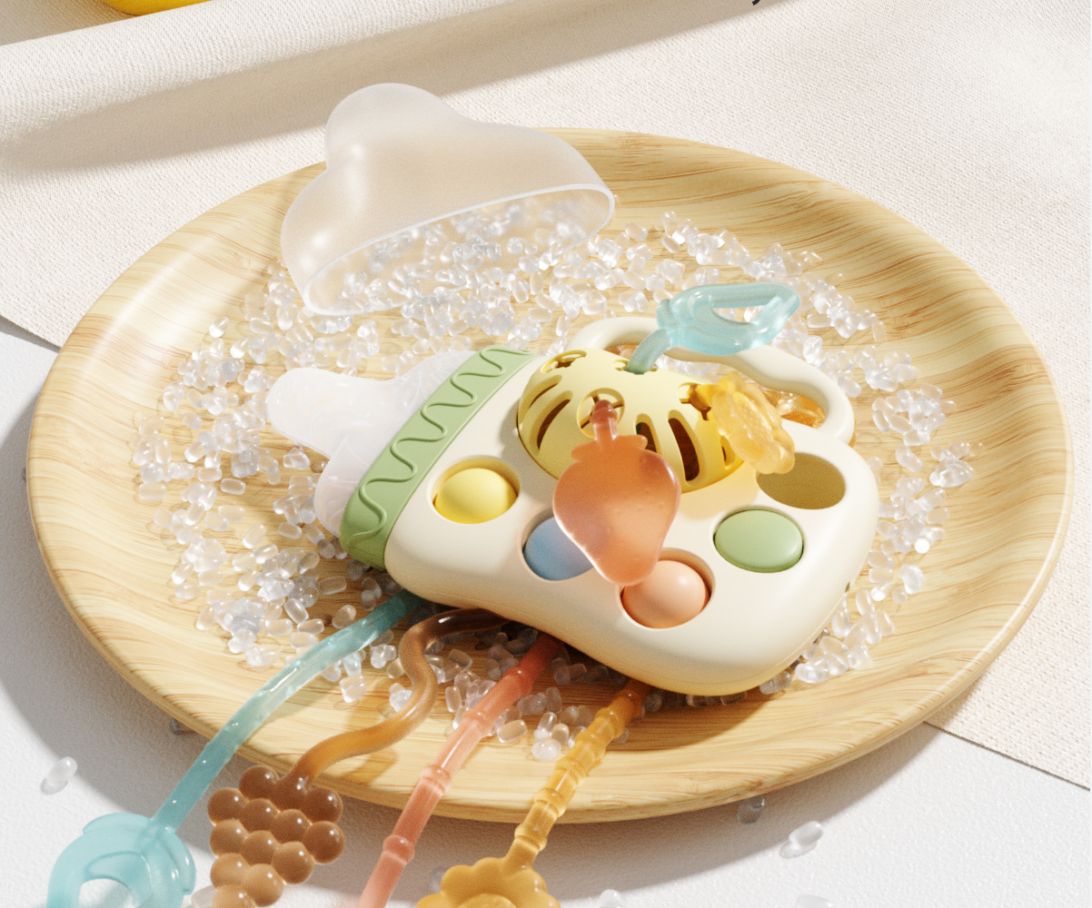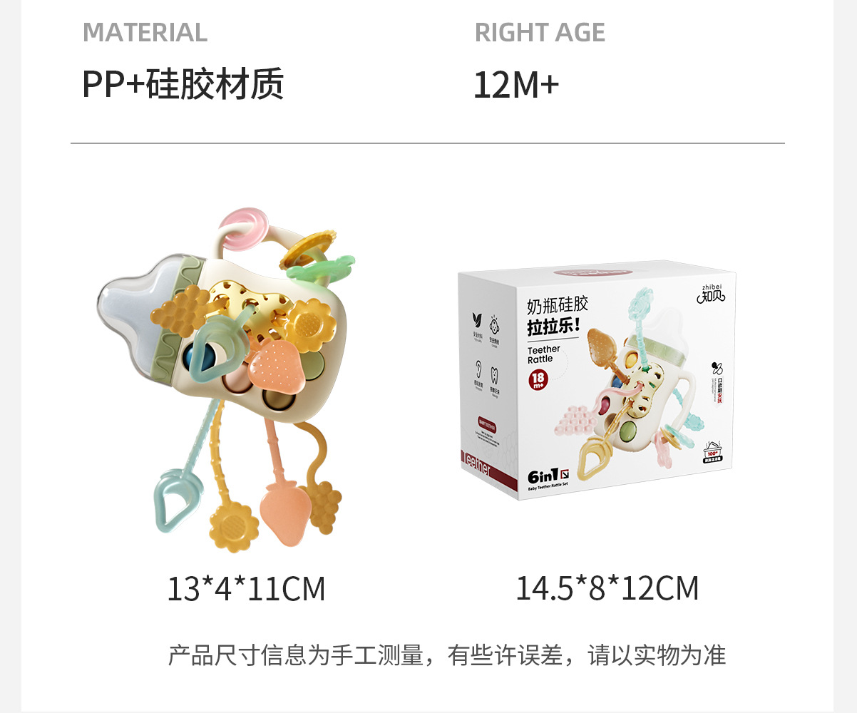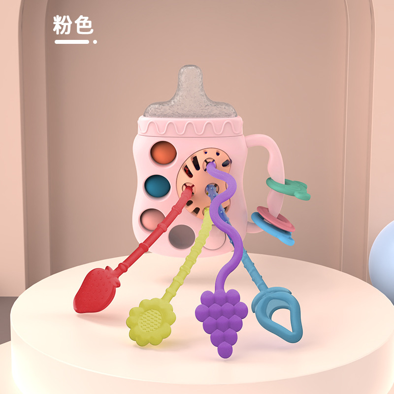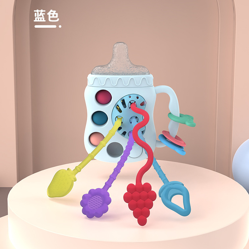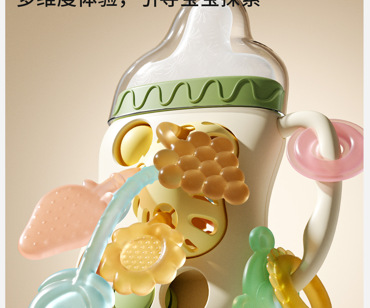 국경을 넘는 젖병 모양의 치발기 딸랑이 장난감, 아기에게 씹어주고 위로할 수 있는 조기 교육용 손가락 세밀 운동 장난감