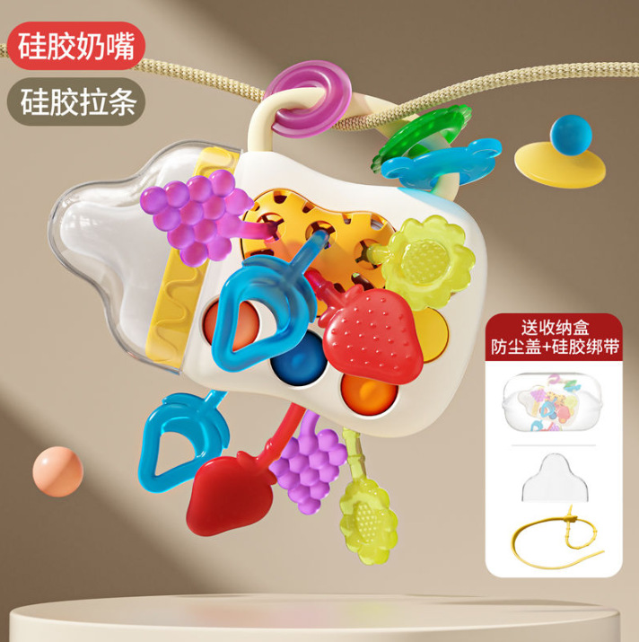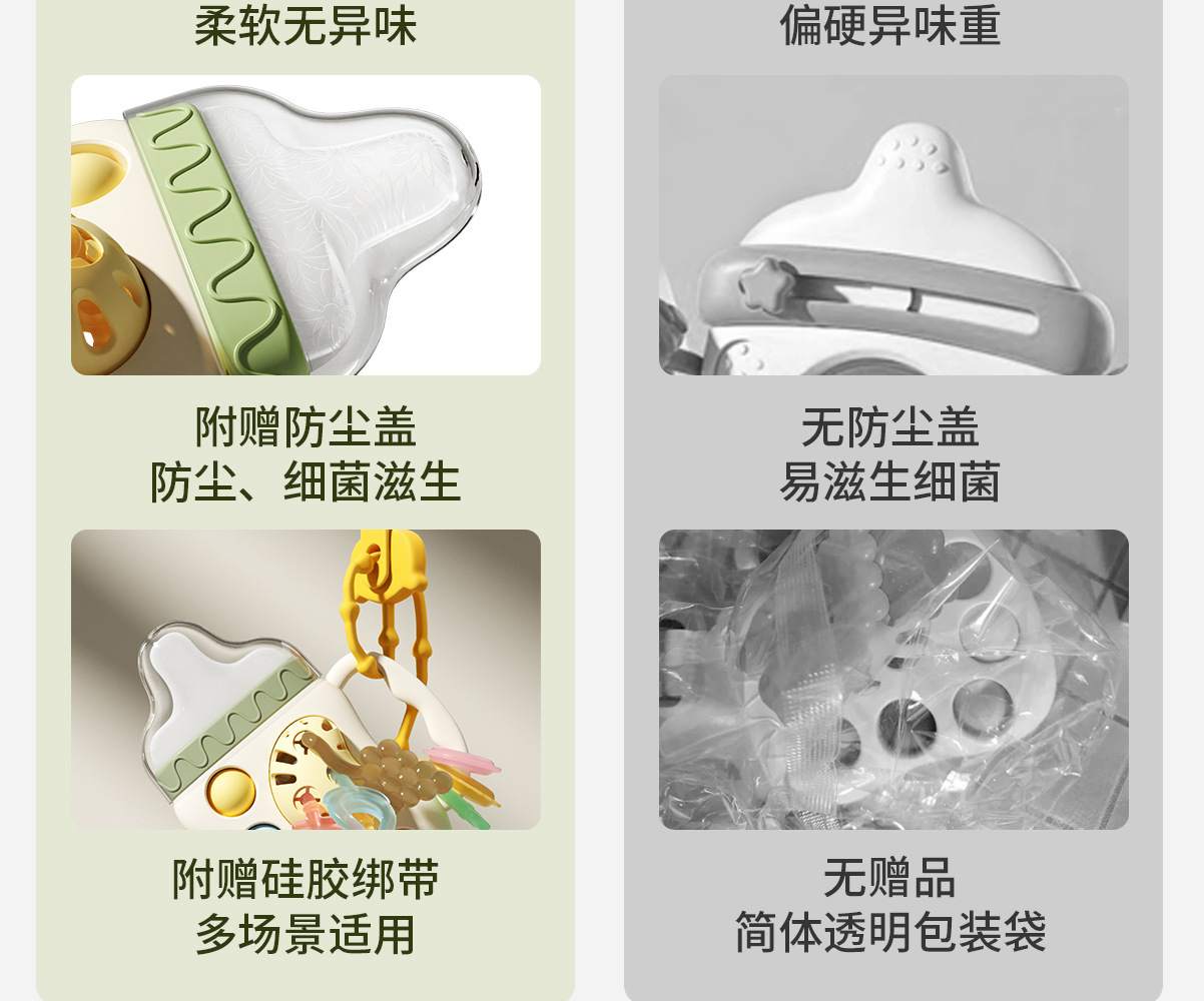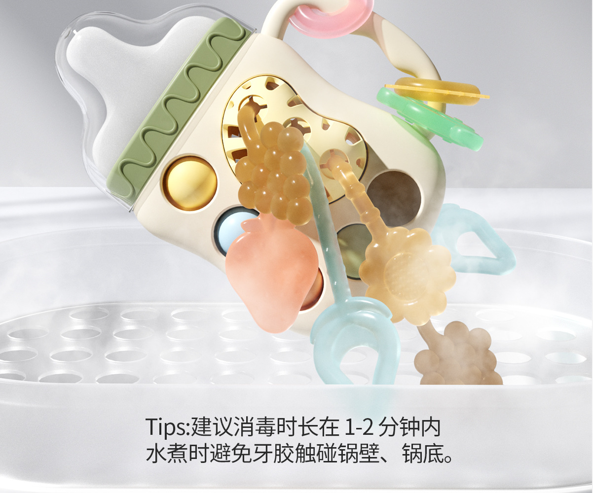 국경을 넘는 젖병 모양의 치발기 딸랑이 장난감, 아기에게 씹어주고 위로할 수 있는 조기 교육용 손가락 세밀 운동 장난감스토어 가기