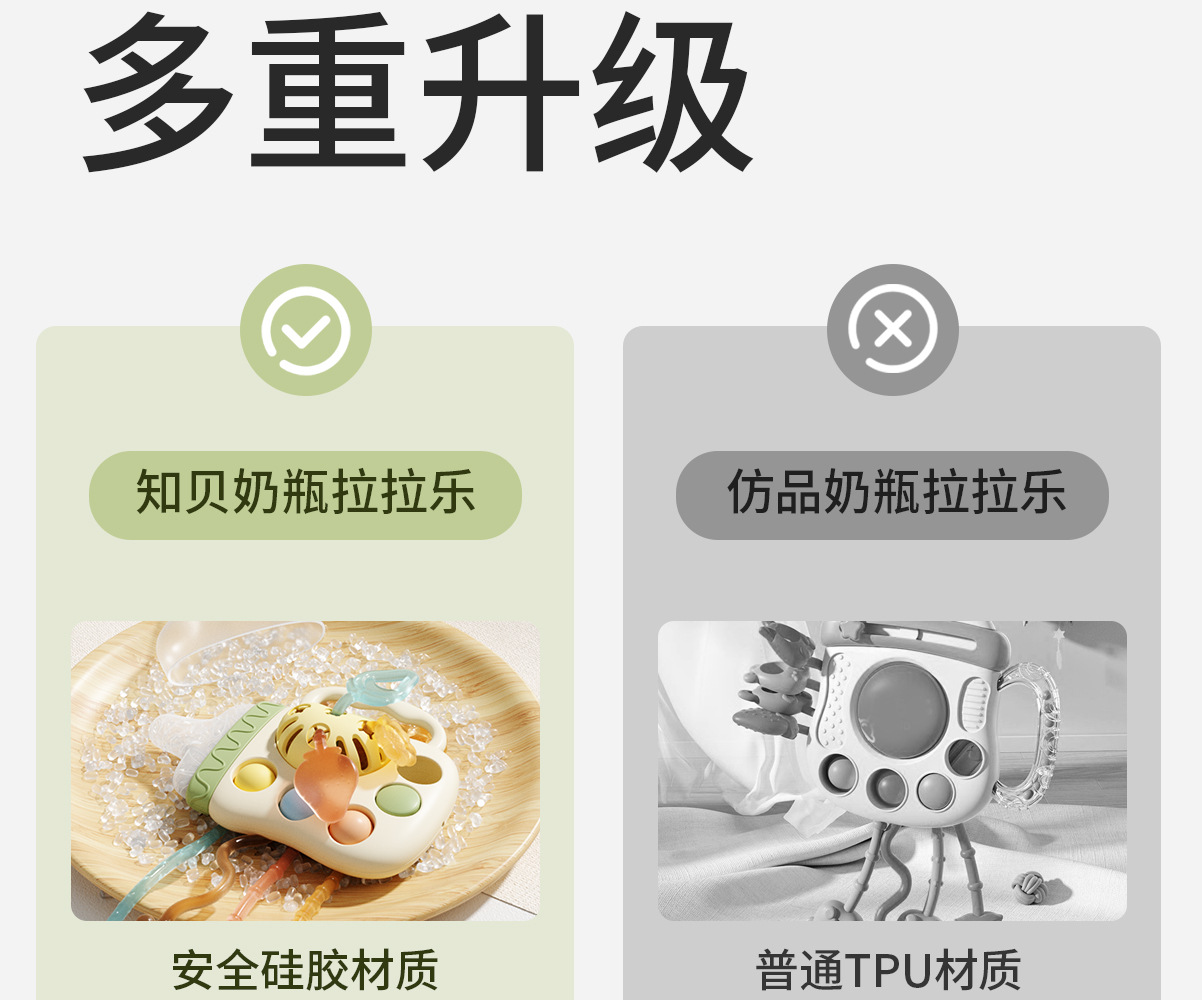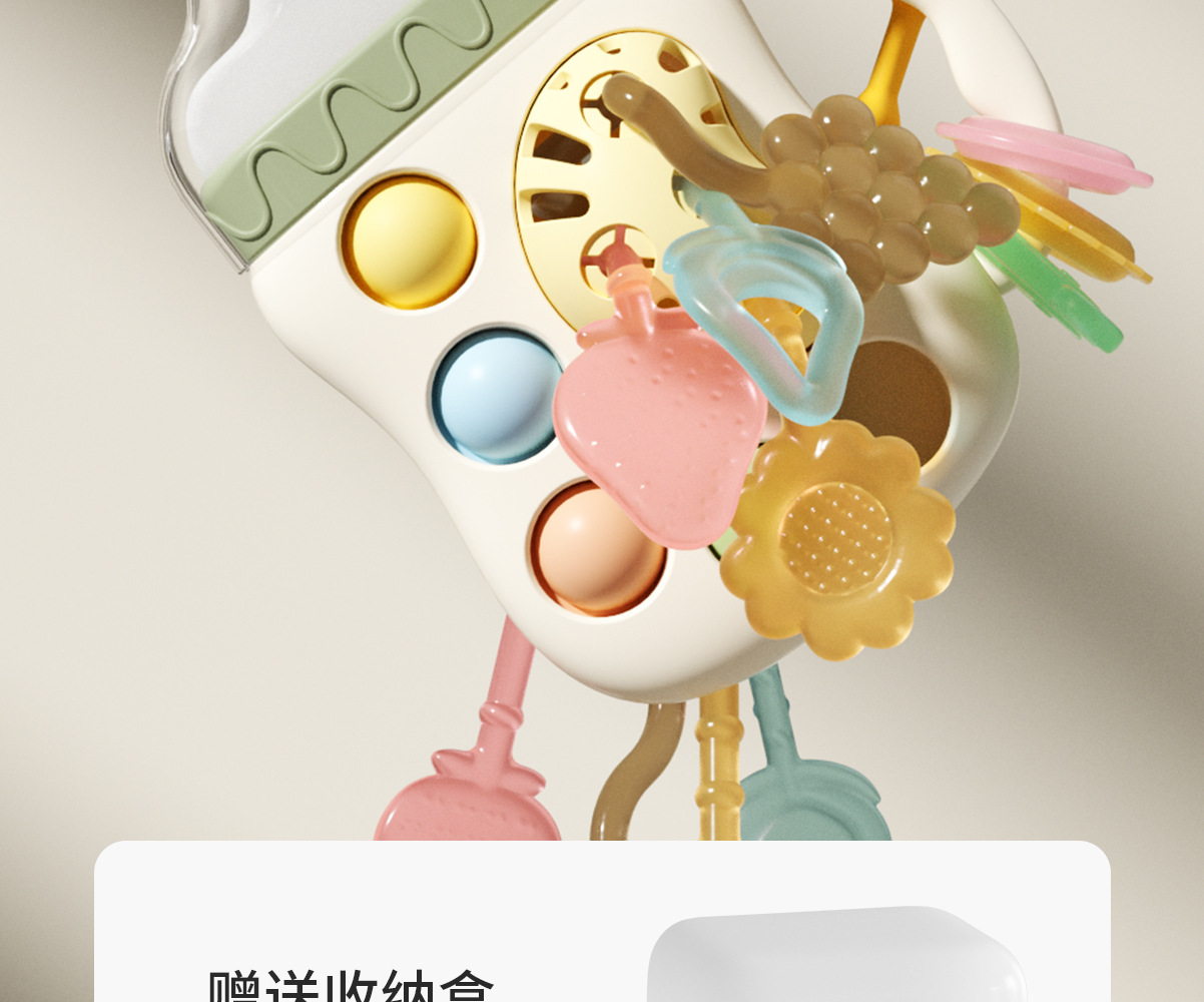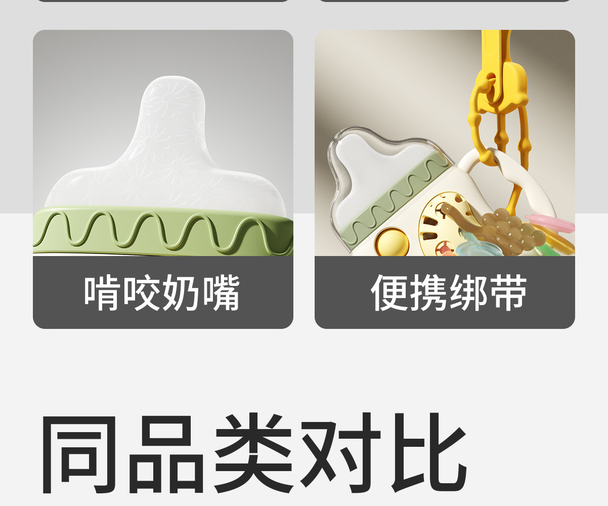 국경을 넘는 젖병 모양의 치발기 딸랑이 장난감, 아기에게 씹어주고 위로할 수 있는 조기 교육용 손가락 세밀 운동 장난감스토어 가기