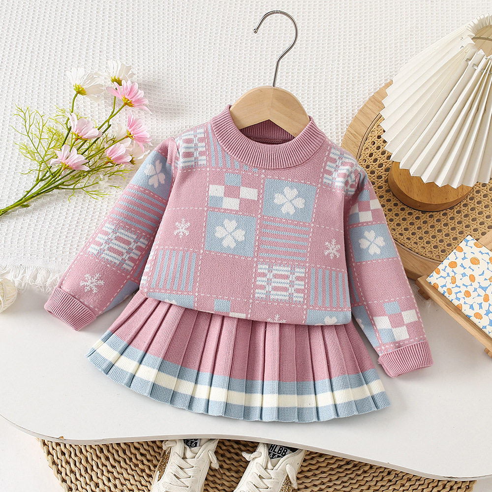 아기 소녀 스웨터 원피스 어린이의 봄과 가을 새로운 니트 투피스 원피스 귀여운 기하학적 그림 스웨터 원피스 해외 무역에 대한 유행