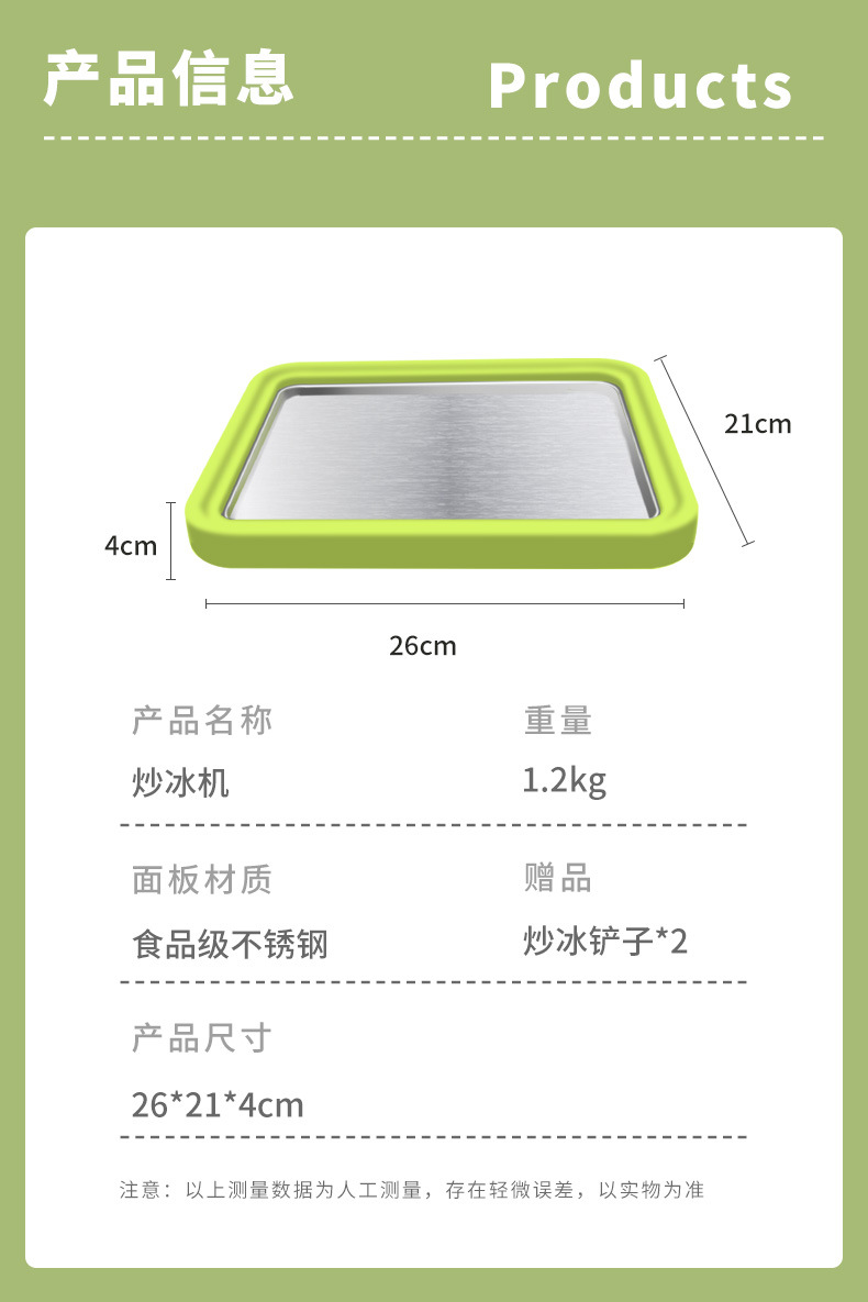 대형 튀긴 사워 우유 기계 프라이드 아이스 플레이트 가정용 어린이 작은 수제 과일 아이스크림 접시 스테인레스 스틸 프라이드 아이스 머신