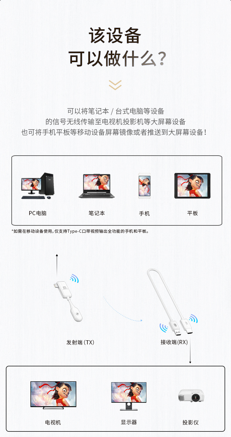 CS7 포인트 투 포인트 플러그 앤 플레이 무선 HDMI 연장 케이블 회의 유형-c 동일한 화면 컴퓨터 프로젝션 HD스토어 가기