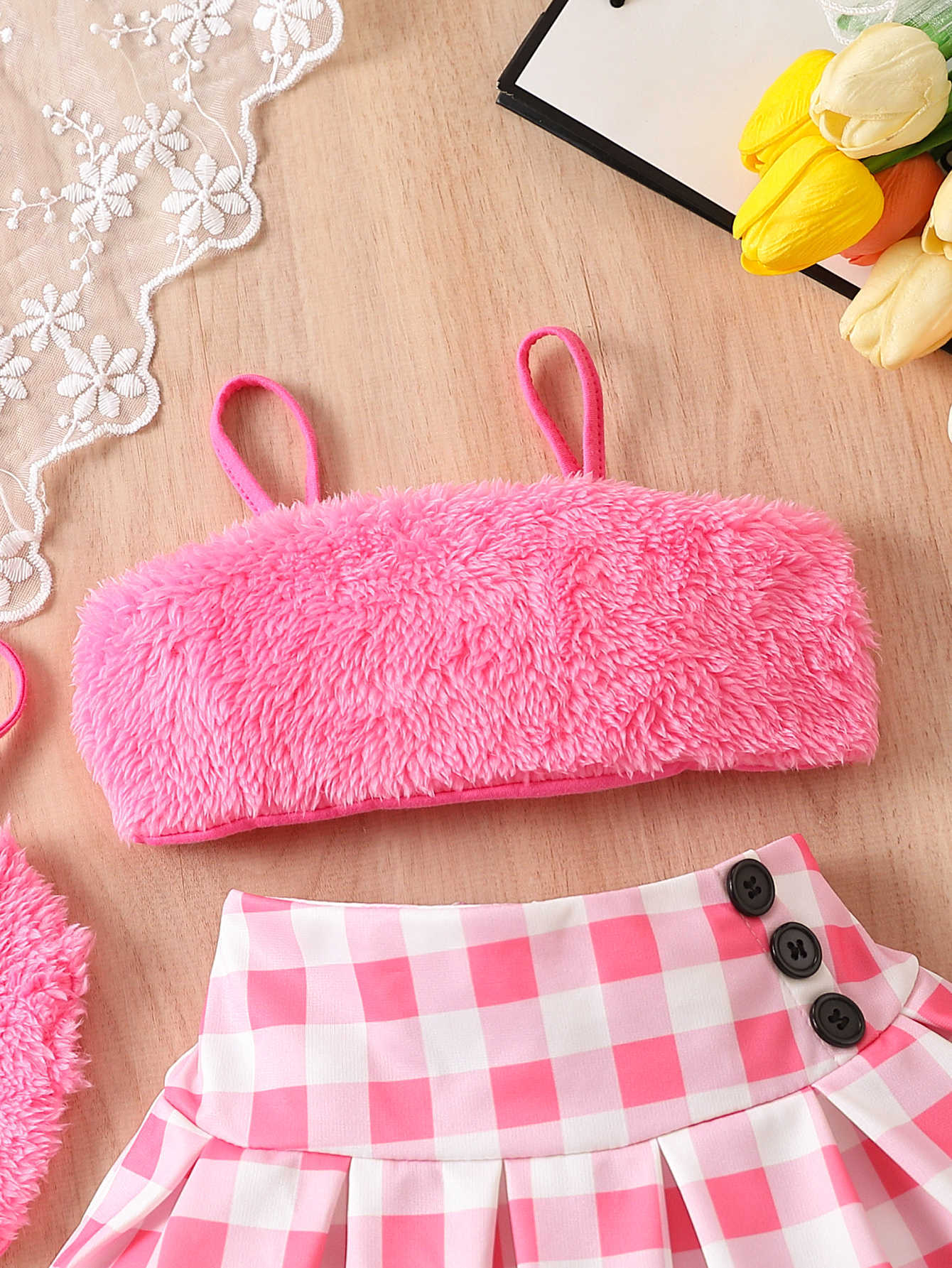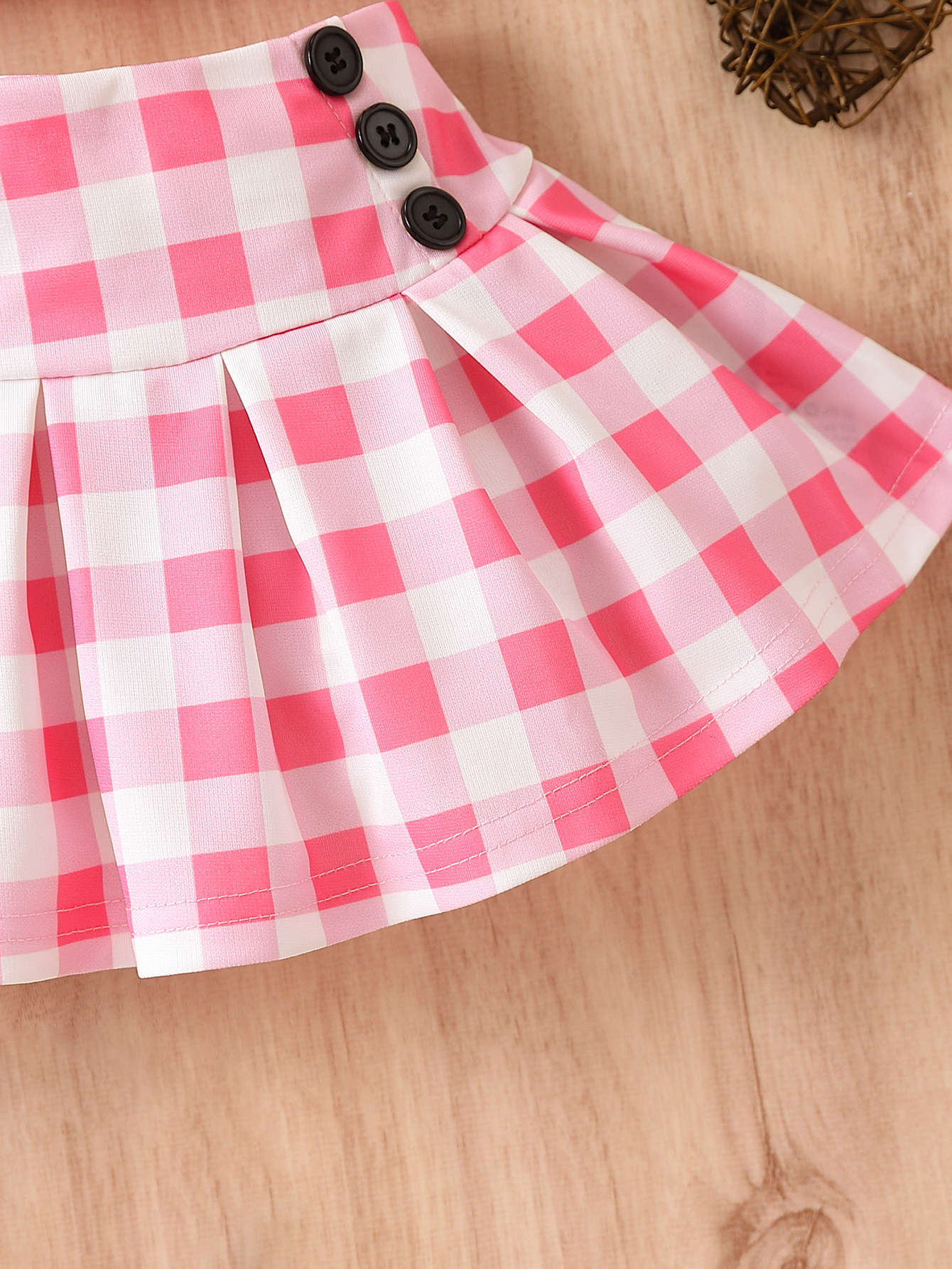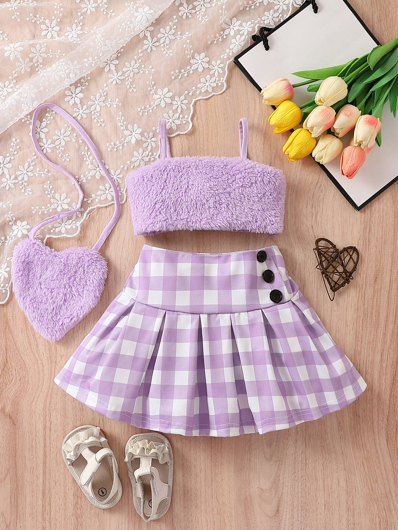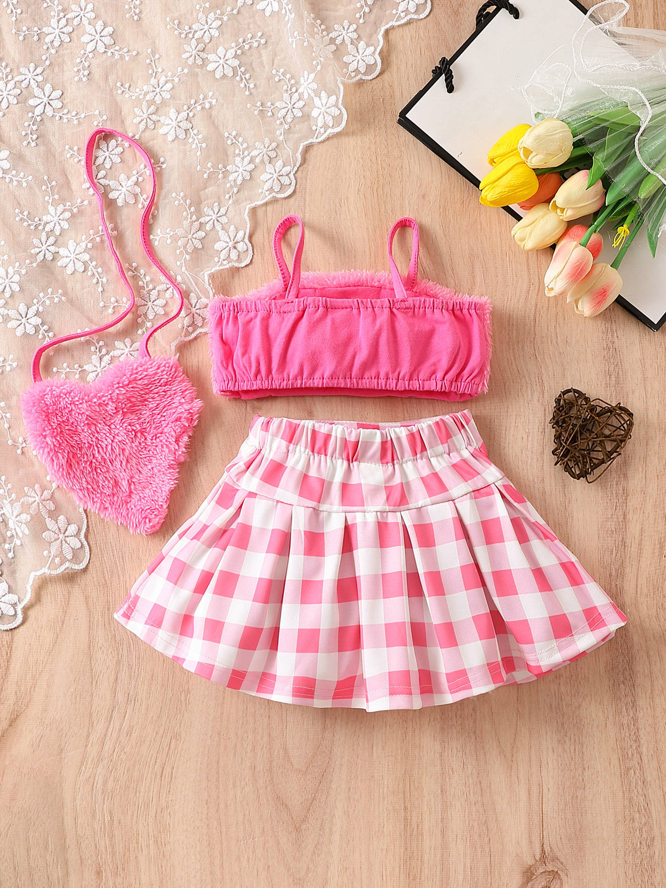 Baopin 아동복 유럽과 미국 캔디 컬러 봄과 여름 마오 마오 슬링 격자 무늬 귀여운 주름 치마 가방 소녀 아기 세트