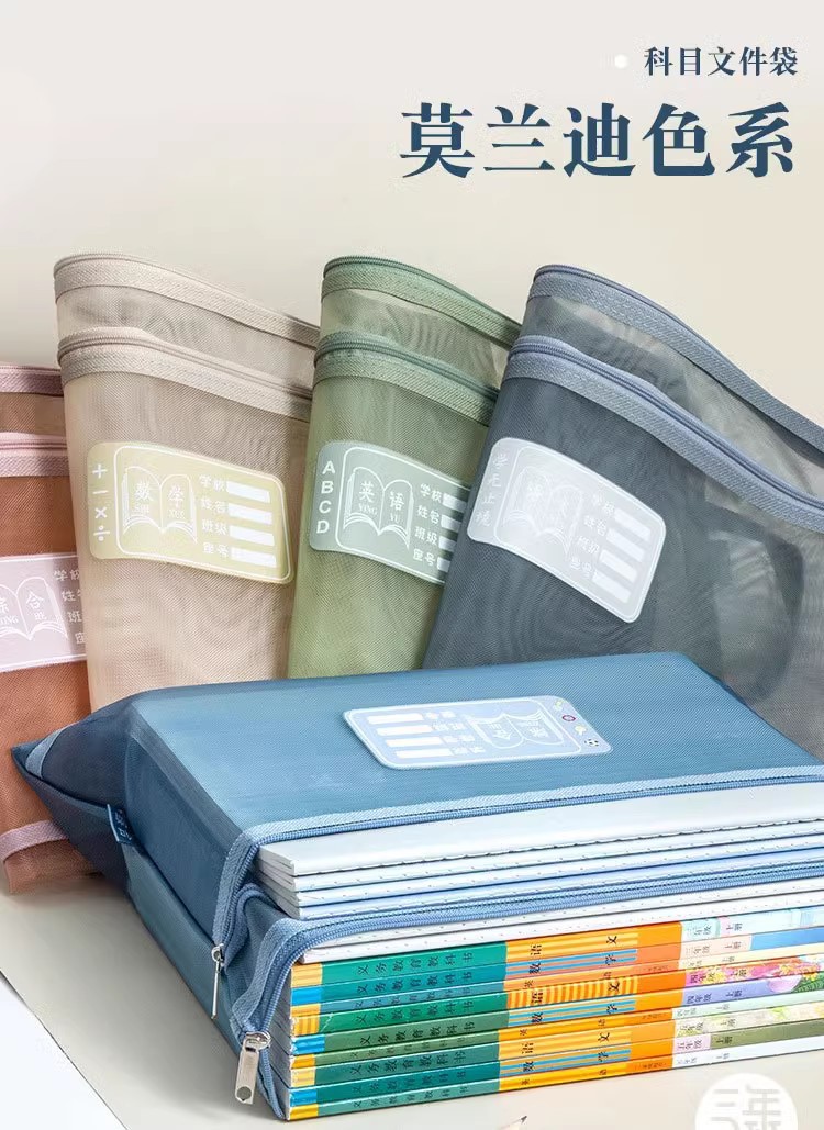 주제 분류 나일론 메쉬 파일 가방 두꺼운 더블 레이어 휴대용 책가방 시험지 보관 가방 초등학생 숙제 가방스토어 가기