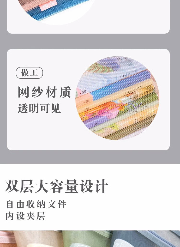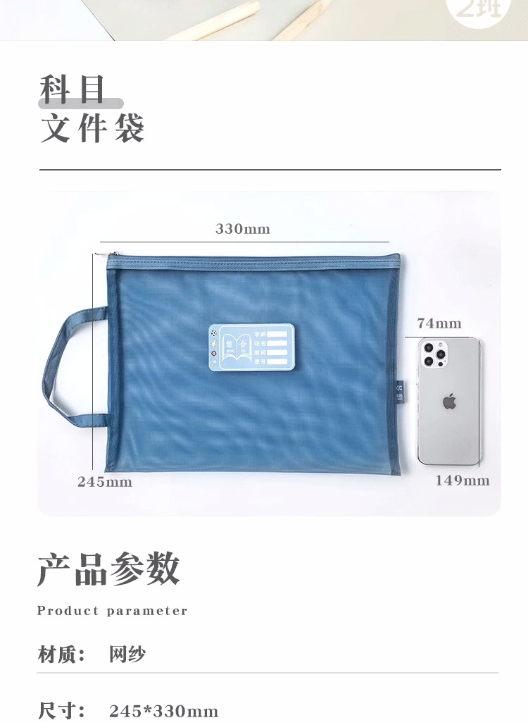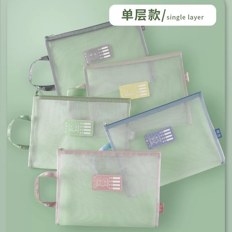 주제 분류 나일론 메쉬 파일 가방 두꺼운 더블 레이어 휴대용 책가방 시험지 보관 가방 초등학생 숙제 가방