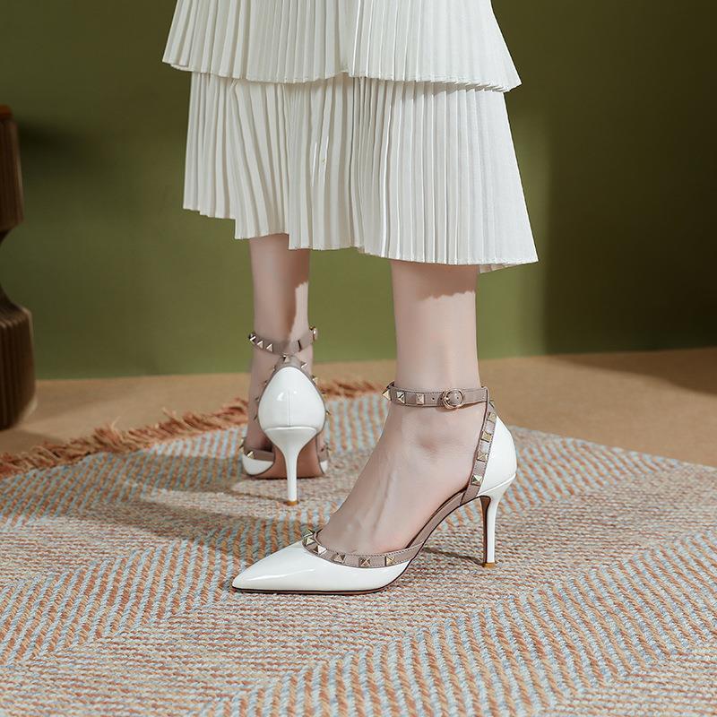 Y20A6-8/Y20A8-8 할로우 하이힐 슈즈 여름 여성의 2023 리벳 버클 스트랩 얇은 힐 샌들 (Baotou 포함)스토어 가기