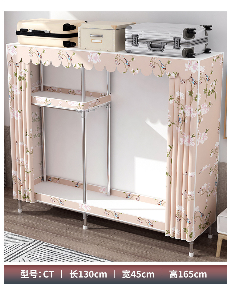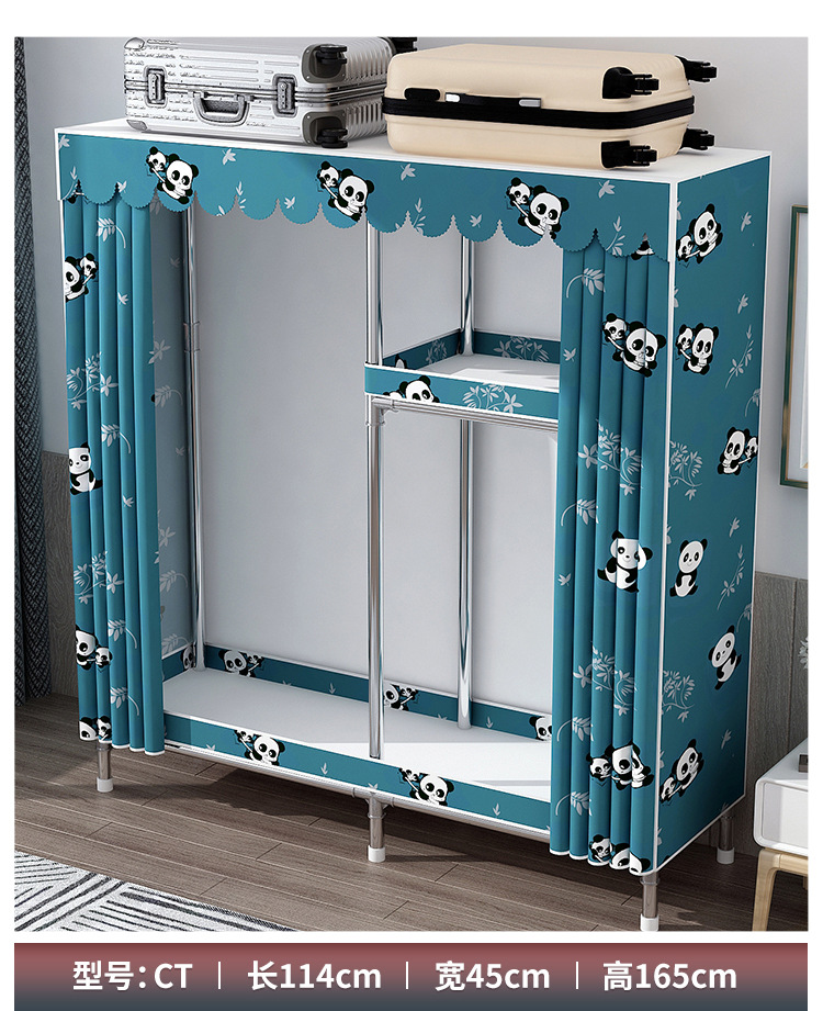강력하고 내구성이 뛰어나며 두꺼운 간단한 패브릭 옷장 조립식 옷장, 임대용 조립식 옷장, 가정용 철제 프레임 옷걸이 캐비닛