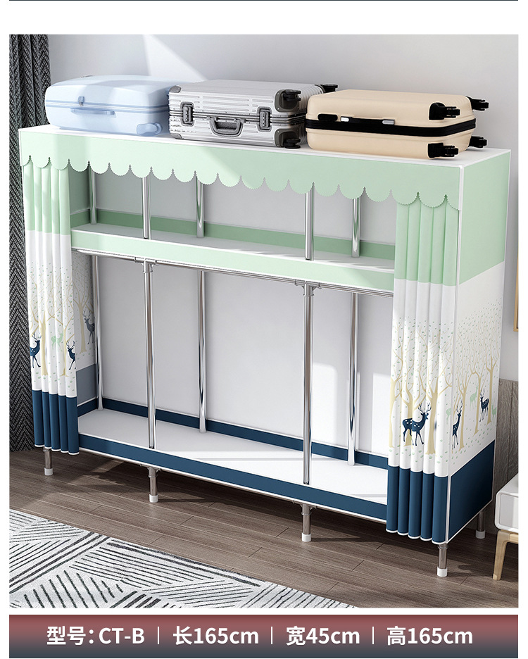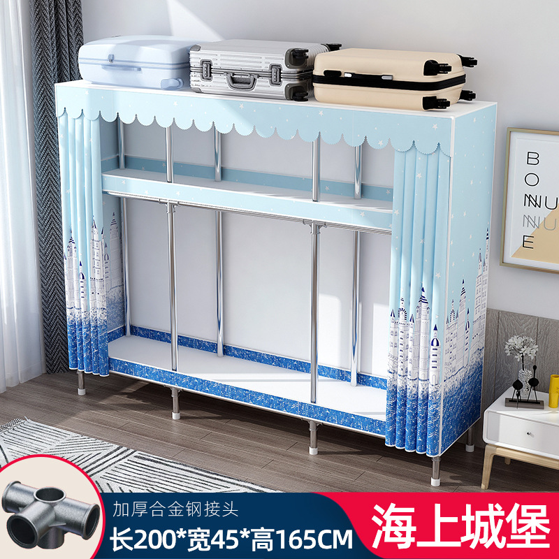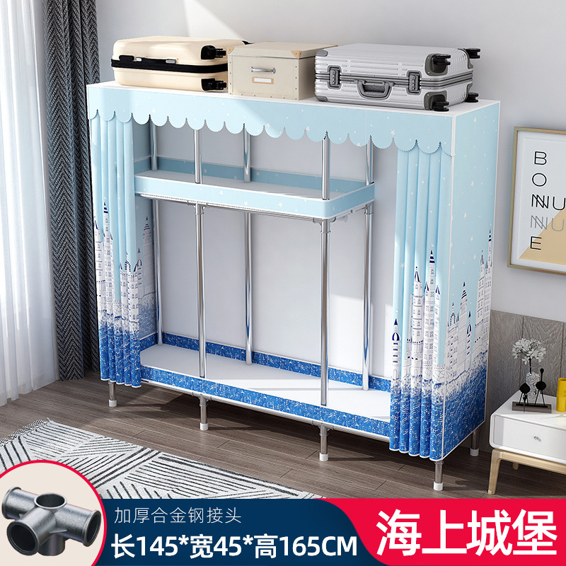 강력하고 내구성이 뛰어나며 두꺼운 간단한 패브릭 옷장 조립식 옷장, 임대용 조립식 옷장, 가정용 철제 프레임 옷걸이 캐비닛스토어 가기