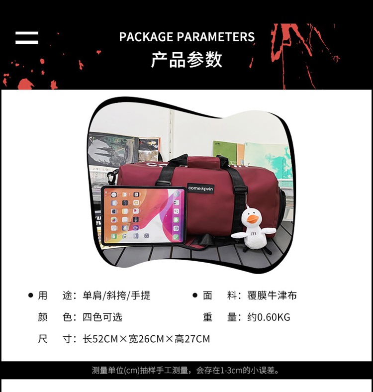 건식 및 습식 분리 스포츠 피트니스 보관 가방 단거리 숄더 크로스바디 여행 가방 남성 및 여성용 대용량 핸드 러기지 백