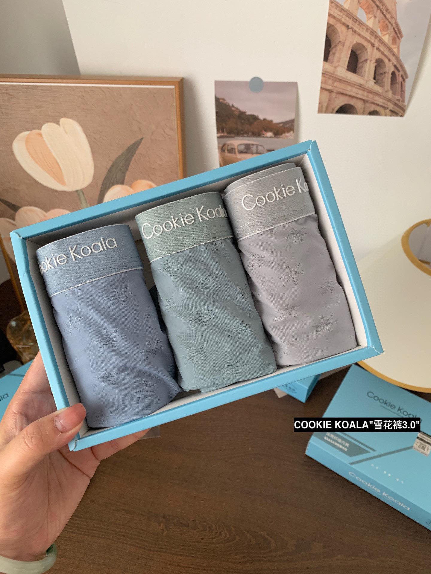 쿠키 KOALA 눈송이 바지 3.0 시원한 원활한 자카드 남성 속옷 세로 실크 슬라이드 복서 반바지 3 팩