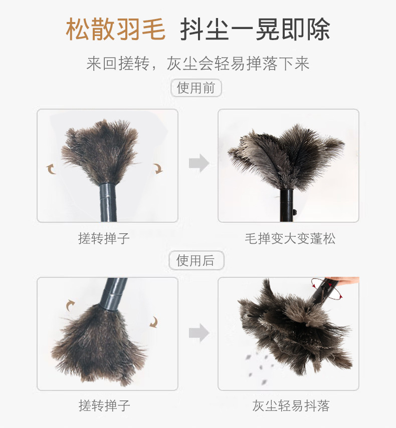 타조 헤어 더스터 먼지 제거 비 린트 가정용 자동차 정적 청소 회색 헤어 브러시 아티팩트 개폐식 타조 헤어 더 스터스토어 가기