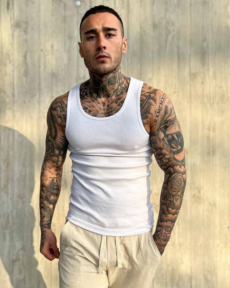 2023 여름 니트 아이스 실크 리브 피트니스 스포츠 레저 슬림 남성 조끼 남성용 I 자형 근육 조끼 남성용스토어 가기
