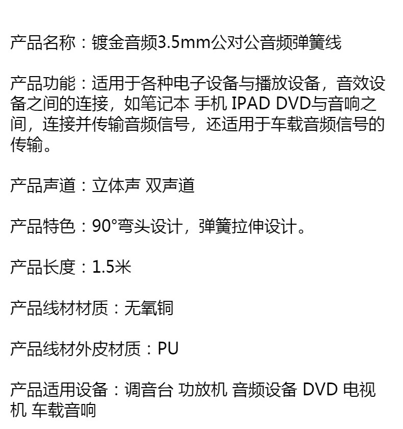 3.5mm 남성-남성 스프링 텔레스코픽 자동차 오디오 케이블 aux 케이블 휴대 전화 자동차 오디오 케이블스토어 가기