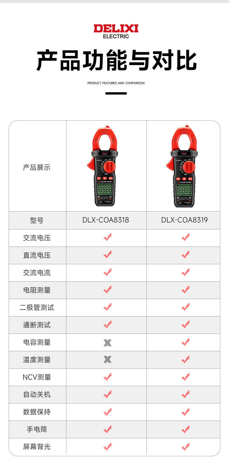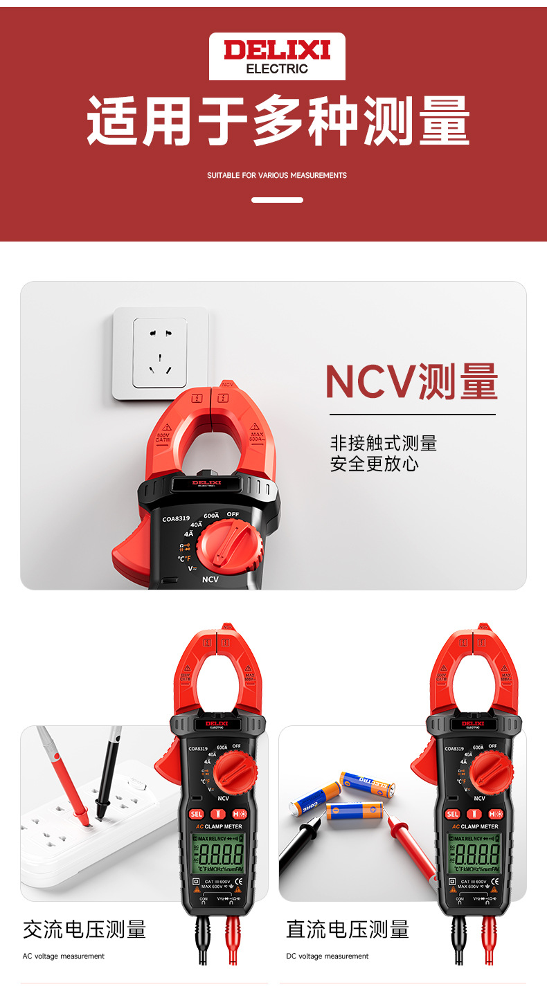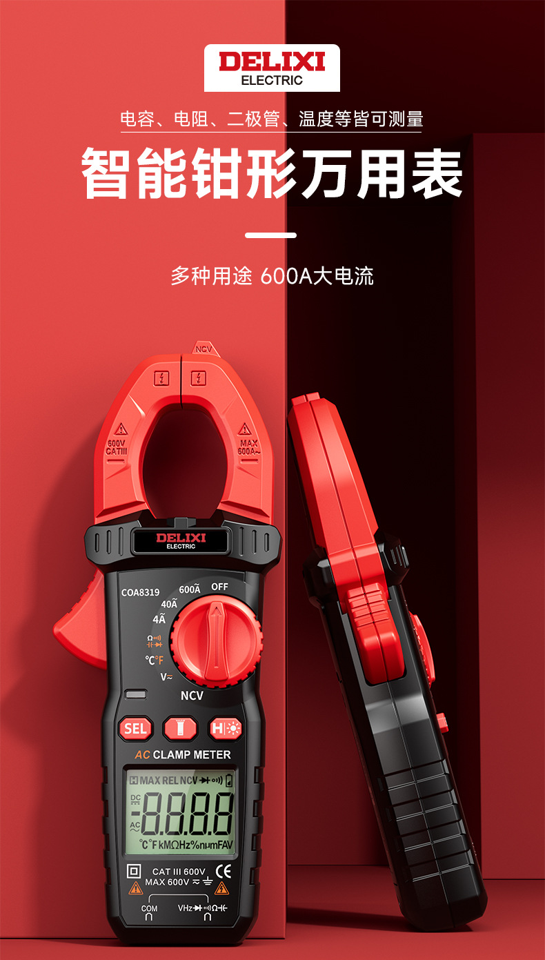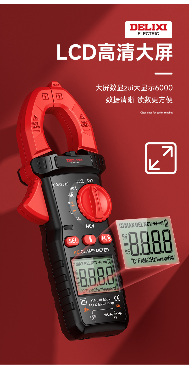 Delixi 디지털 클램프 미터 고정밀 클램프 멀티미터 AC/DC 전압계 화상 방지 지능형 전류계