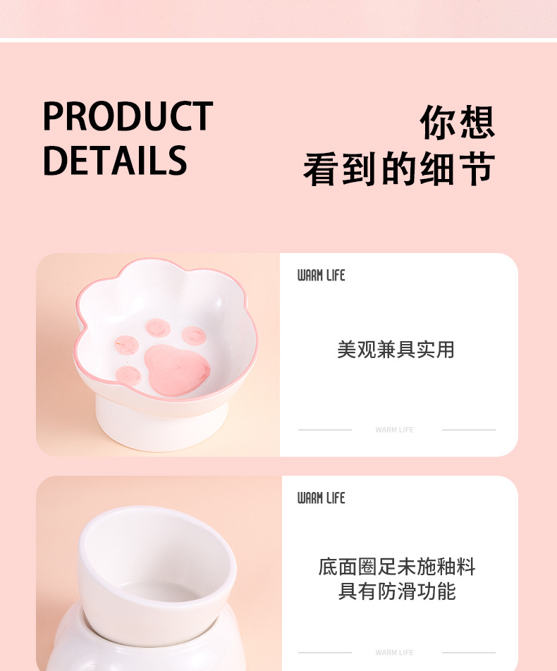 귀여운 도자기 고양이 사발 개 사료 분지 높은 발 비스듬한 플랫 사발 물 사발 애완 동물 용품 도매 세대스토어 가기