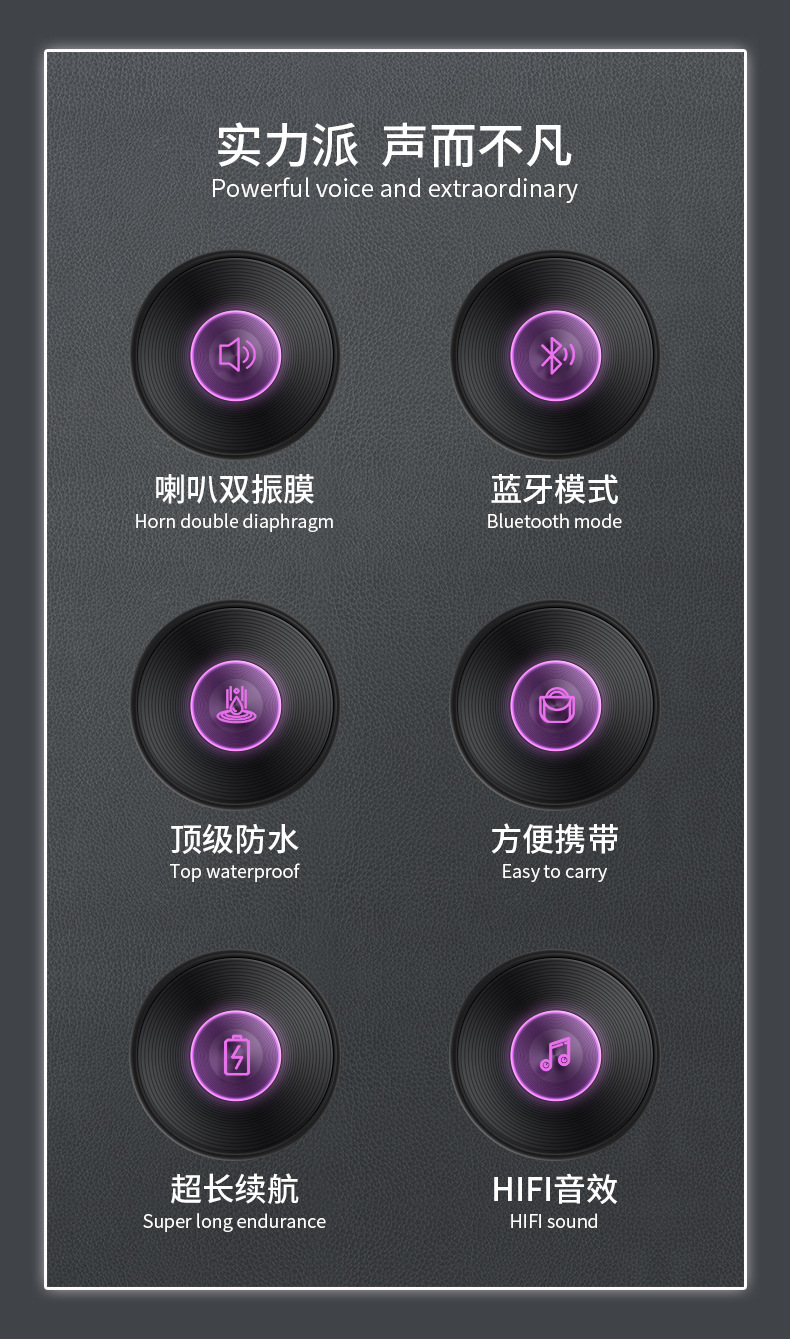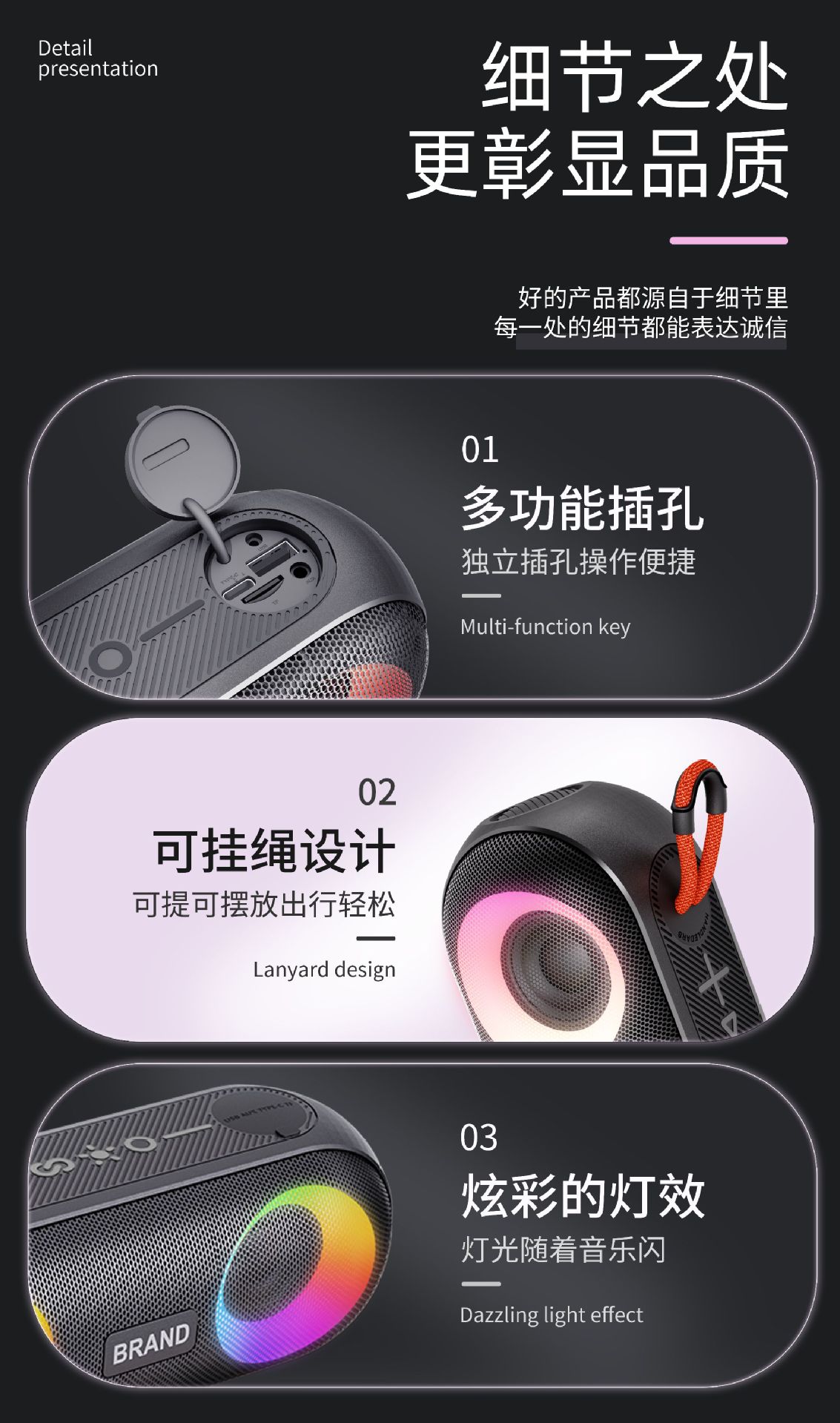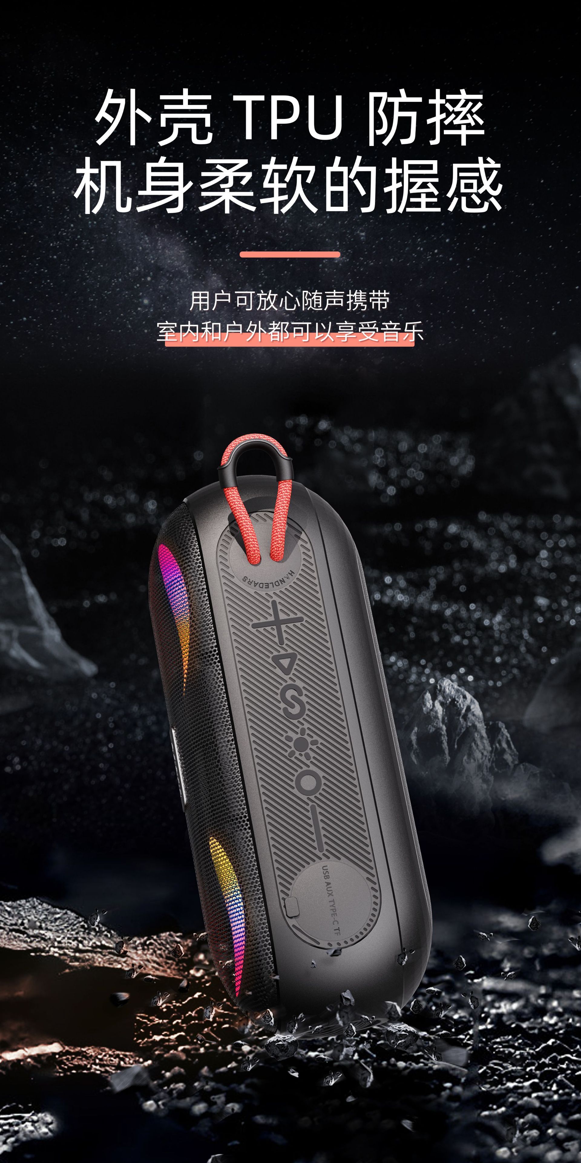 8种LED灯效/免提通话/支持可循环充电/记忆播放/移动电源功能