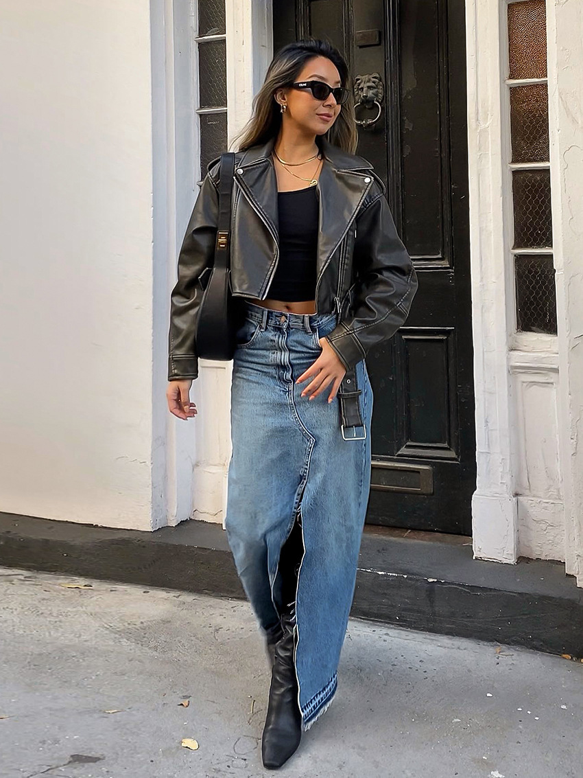 2023 국경 간 유럽과 미국의 캐주얼 패션 하이 허리 슬리밍 분할 복고풍 고민 칼집 다재다능한 데님 긴 스커트 하프 길이