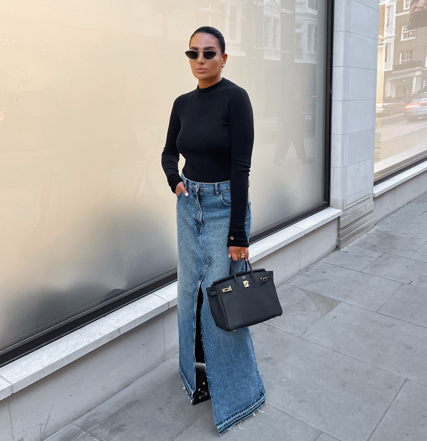 2023 국경 간 유럽과 미국의 캐주얼 패션 하이 허리 슬리밍 분할 복고풍 고민 칼집 다재다능한 데님 긴 스커트 하프 길이스토어 가기
