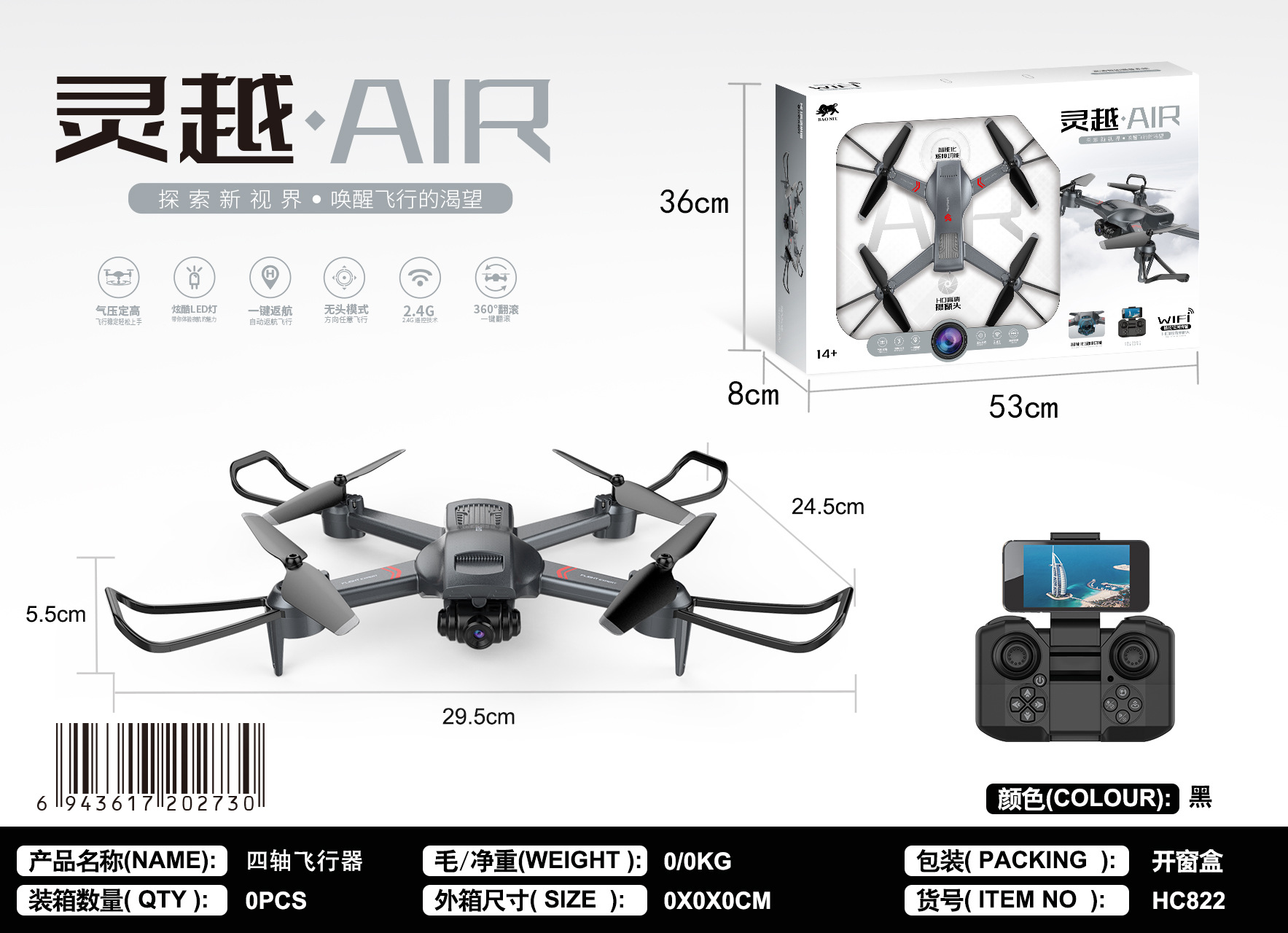• HC822 Lingyue AIR 원격 제어 쿼드콥터 (고정 높이 + 장애물 회피 + WIFI 카메라)