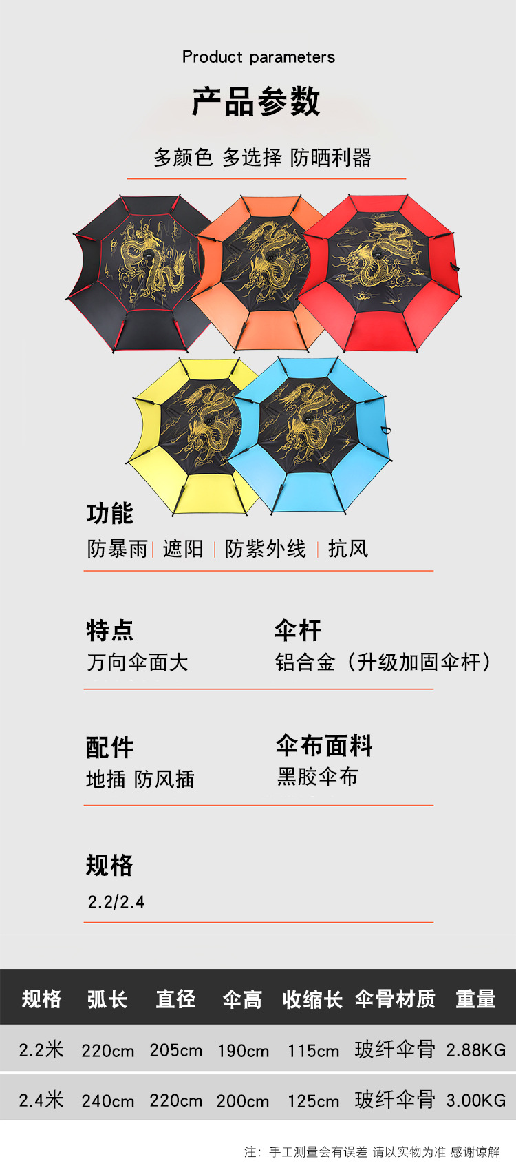 • 2.4 m 버클 프레임 비닐 드래곤 패턴 블랙