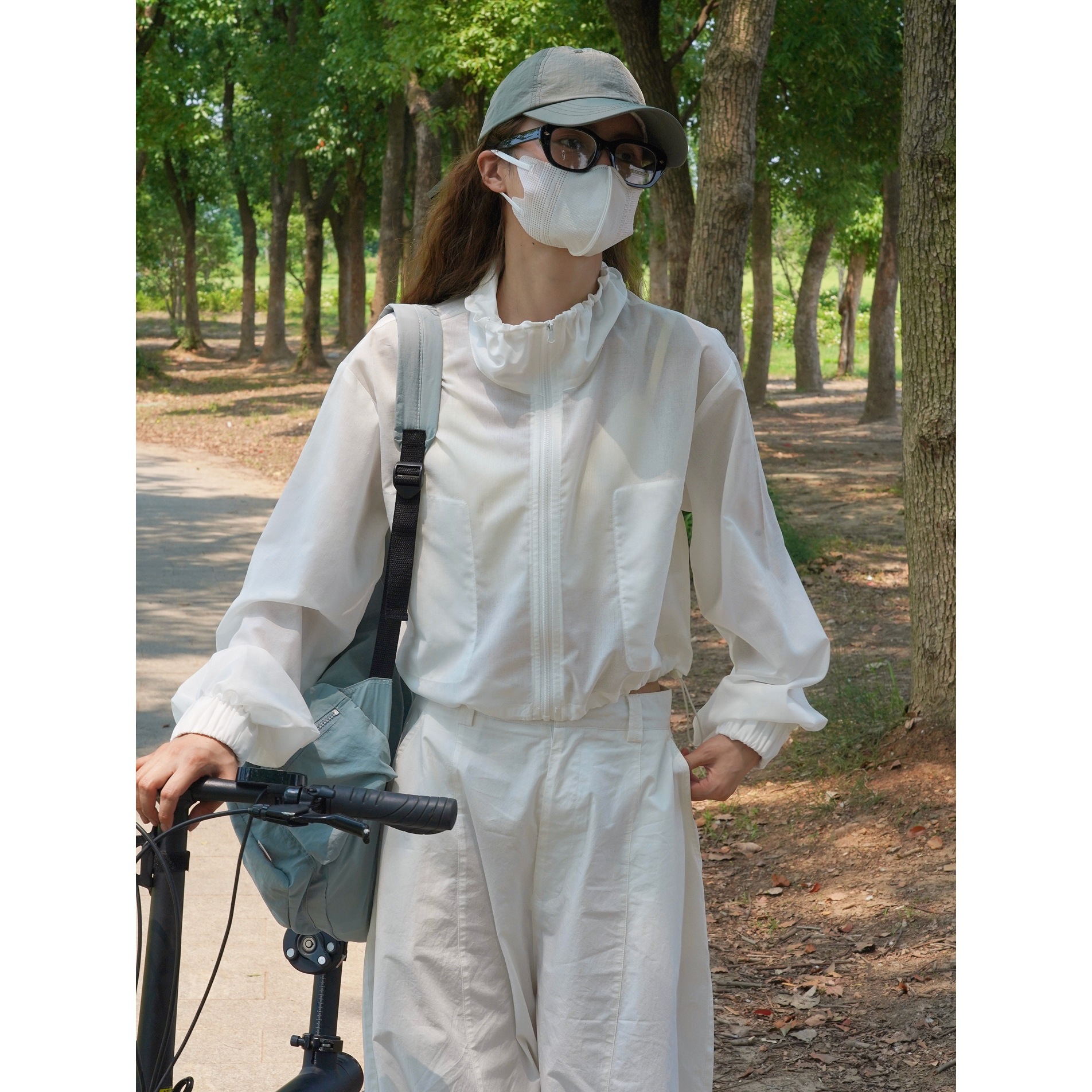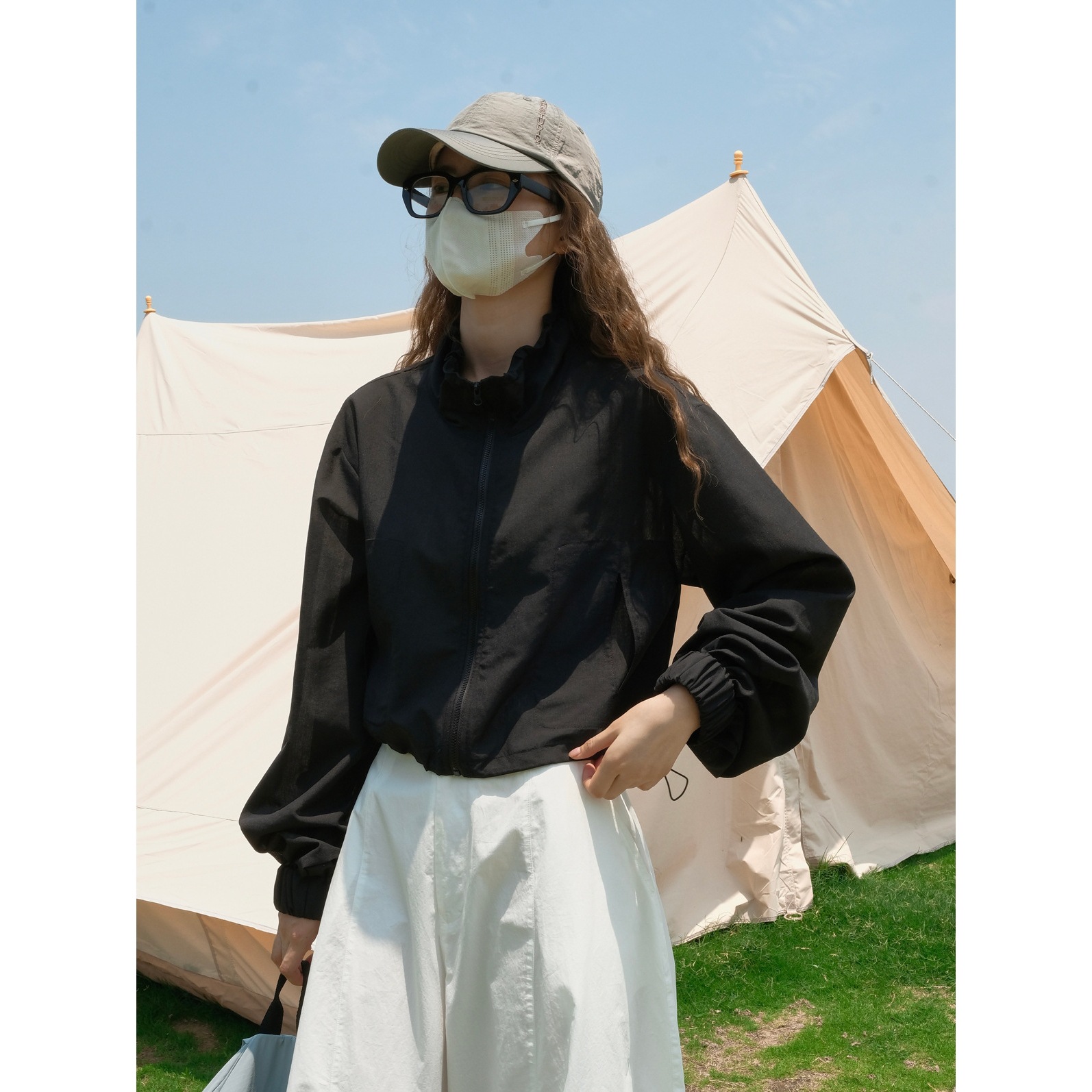 Lufu 여름 새로운 한국식 야외 스포츠 자외선 차단제 쇼트 재킷 느슨한 슬리밍 멋진 경량 캐주얼 탑 여성용스토어 가기
