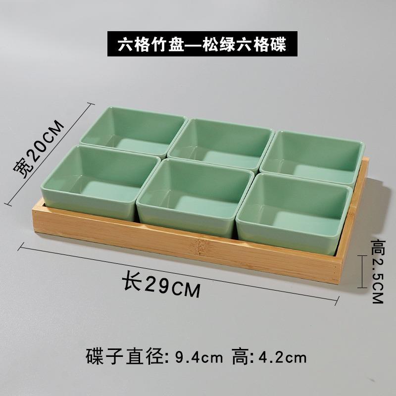 • 6 칸 대나무 접시-소나무 녹색