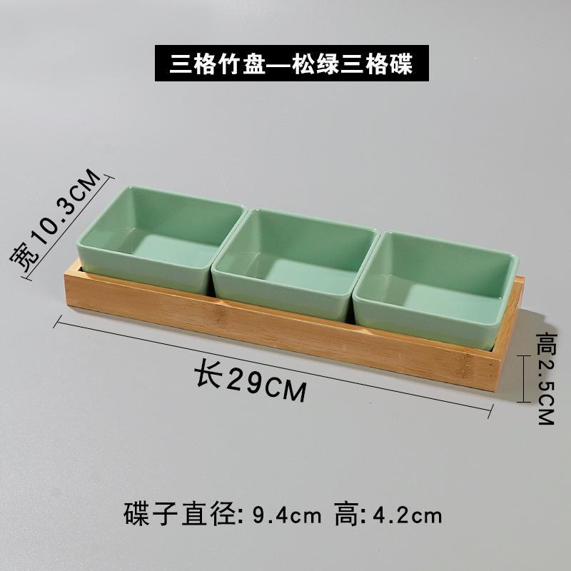 • 3 칸짜리 대나무 접시-소나무 녹색