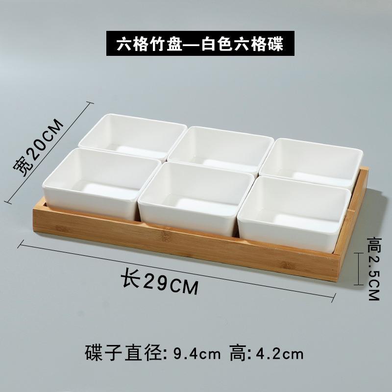• 6 그리드 대나무 접시-커피 화이트