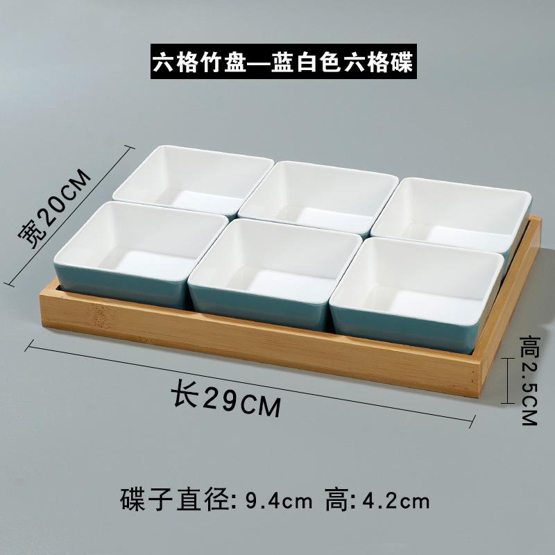 • 6 칸짜리 대나무 접시-파란색과 흰색