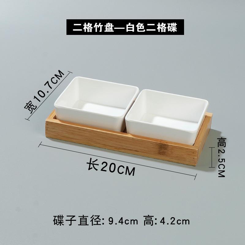 • 두 칸으로 된 대나무 접시-흰색