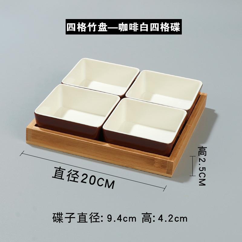 • 4 그리드 대나무 접시-커피 화이트