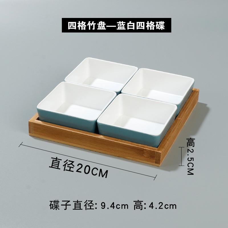 • 4 그리드 대나무 접시-파란색과 흰색