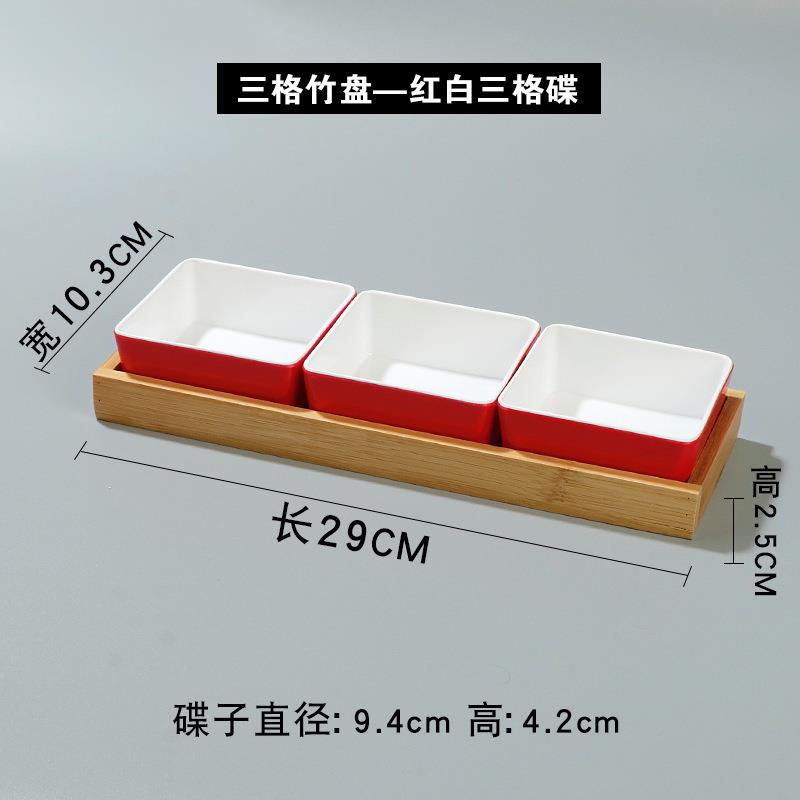 • 3 칸짜리 대나무 접시-빨간색과 흰색