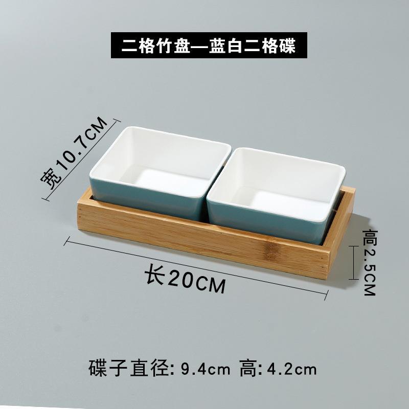 • 두 칸으로 된 대나무 접시-파란색과 흰색