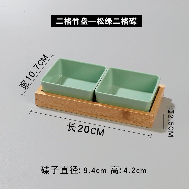 • 2 칸짜리 대나무 접시-소나무 녹색