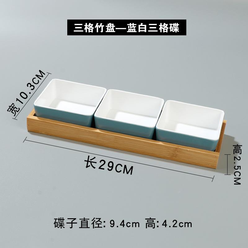 • 3 칸짜리 대나무 접시-파란색과 흰색