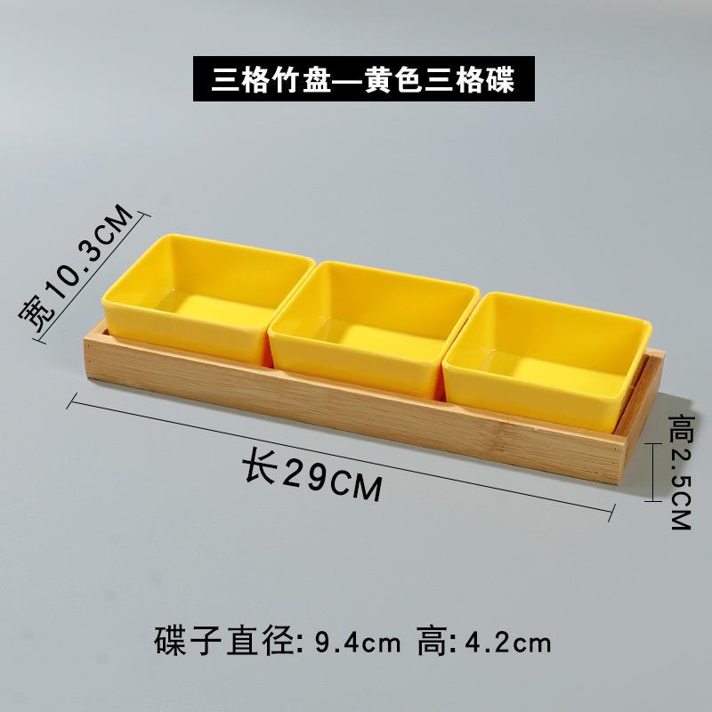 • 3 칸짜리 대나무 접시-노란색