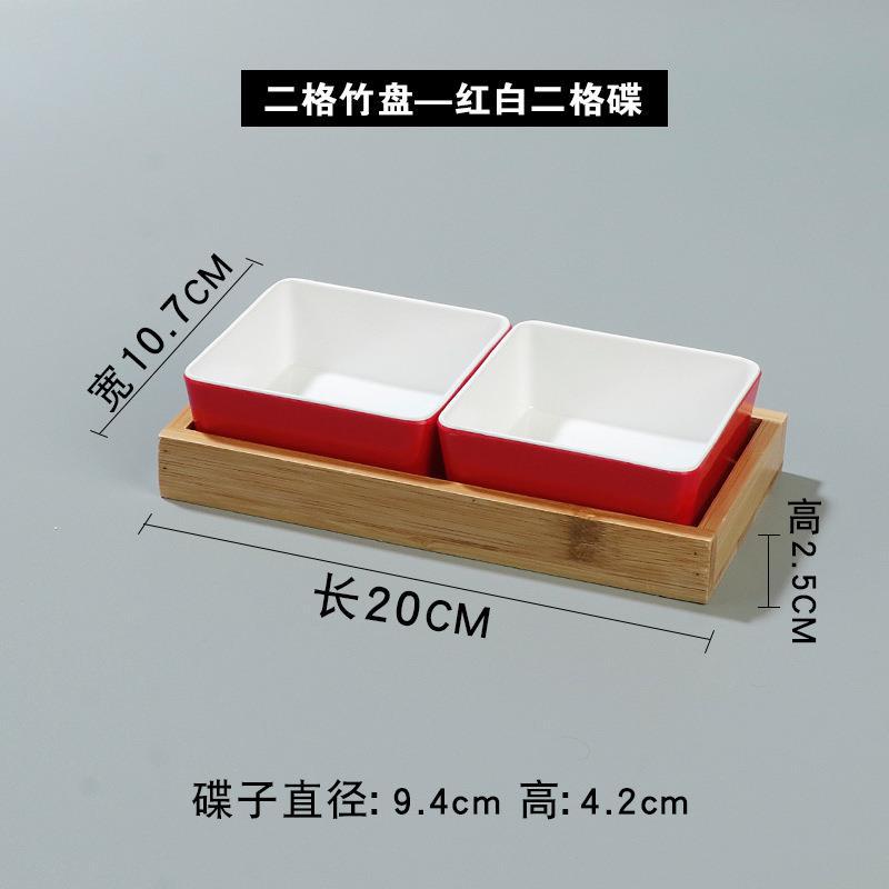 • 두 칸으로 된 대나무 접시-빨간색과 흰색