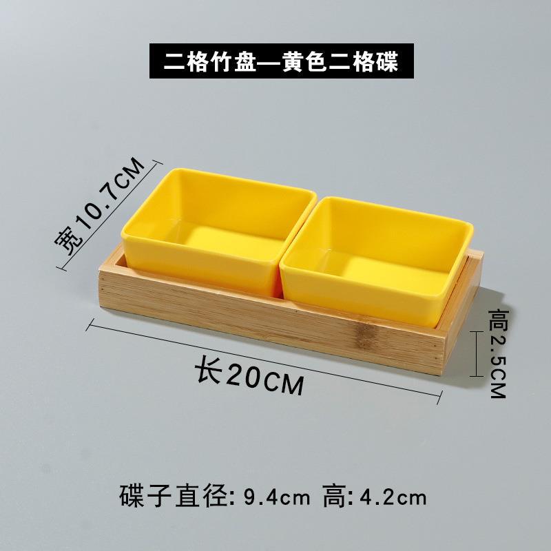 • 두 칸으로 된 대나무 접시-노란색