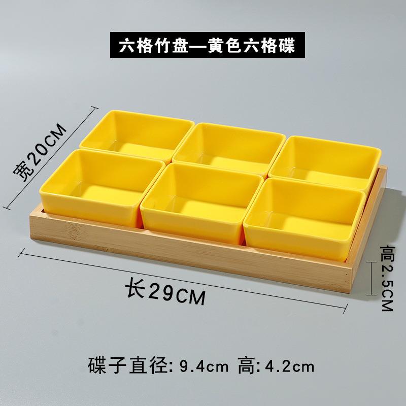 • 6 칸 대나무 접시-노란색
