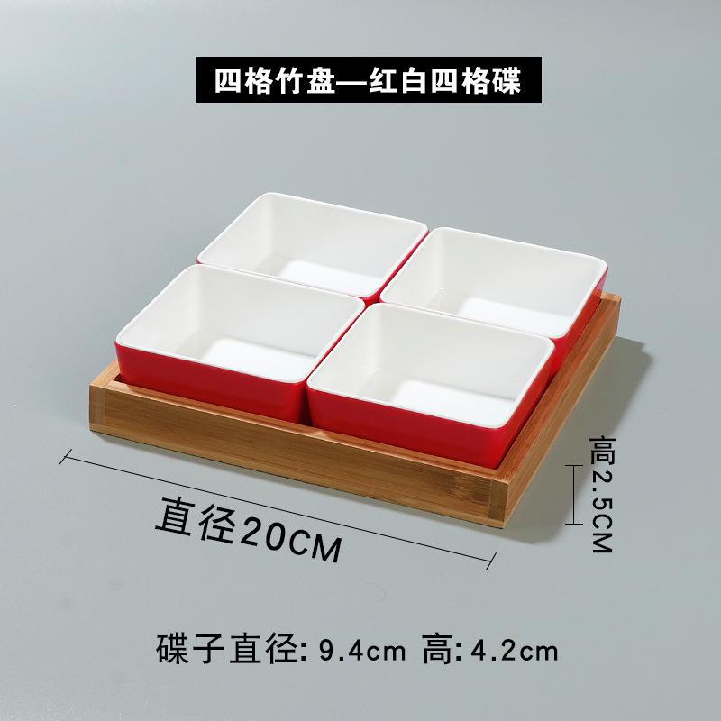 • 4 칸짜리 대나무 접시-빨간색과 흰색