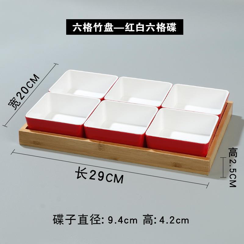 • 6 대나무 접시-빨간색과 흰색