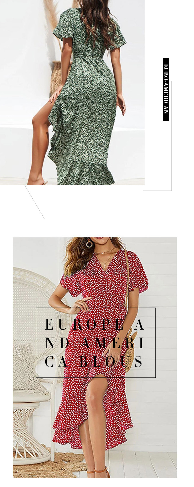 유럽과 미국 크로스 보더 여성 의류 아마존 AliExpress 핫 세일 새로운 여름 반팔 쉬폰 프릴 하이 웨이스트 원피스스토어 가기