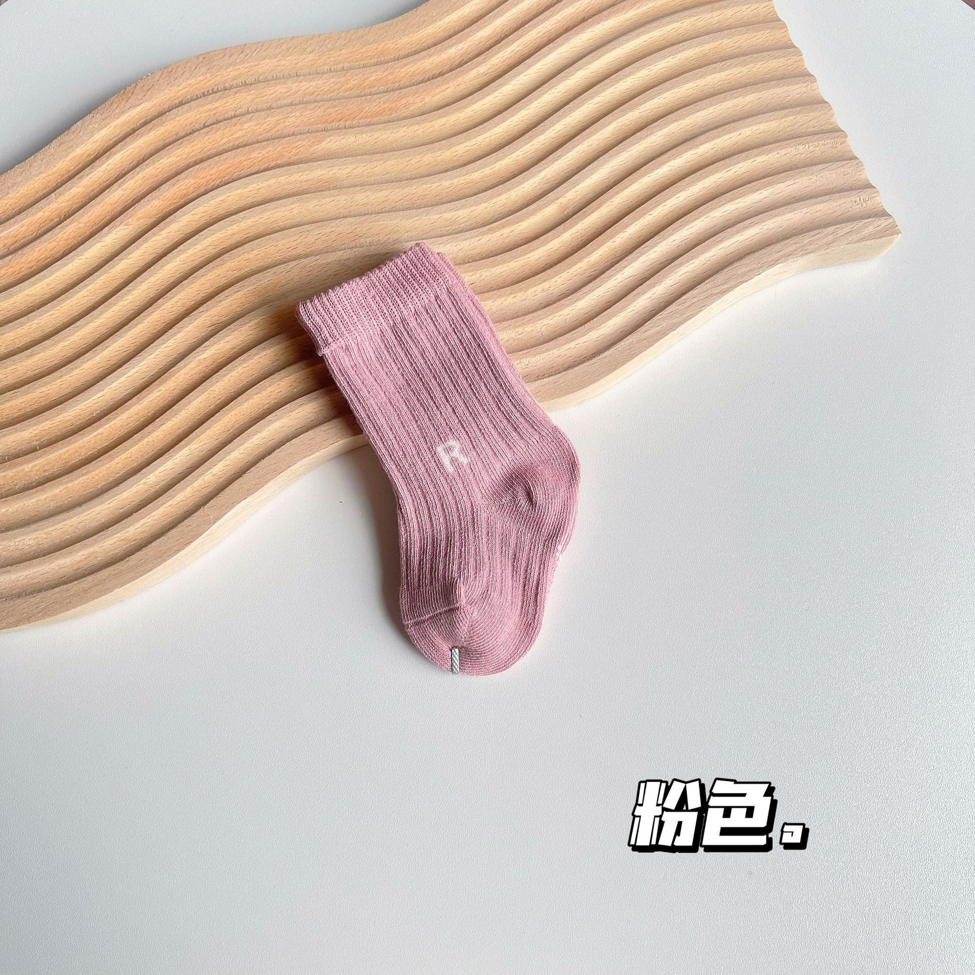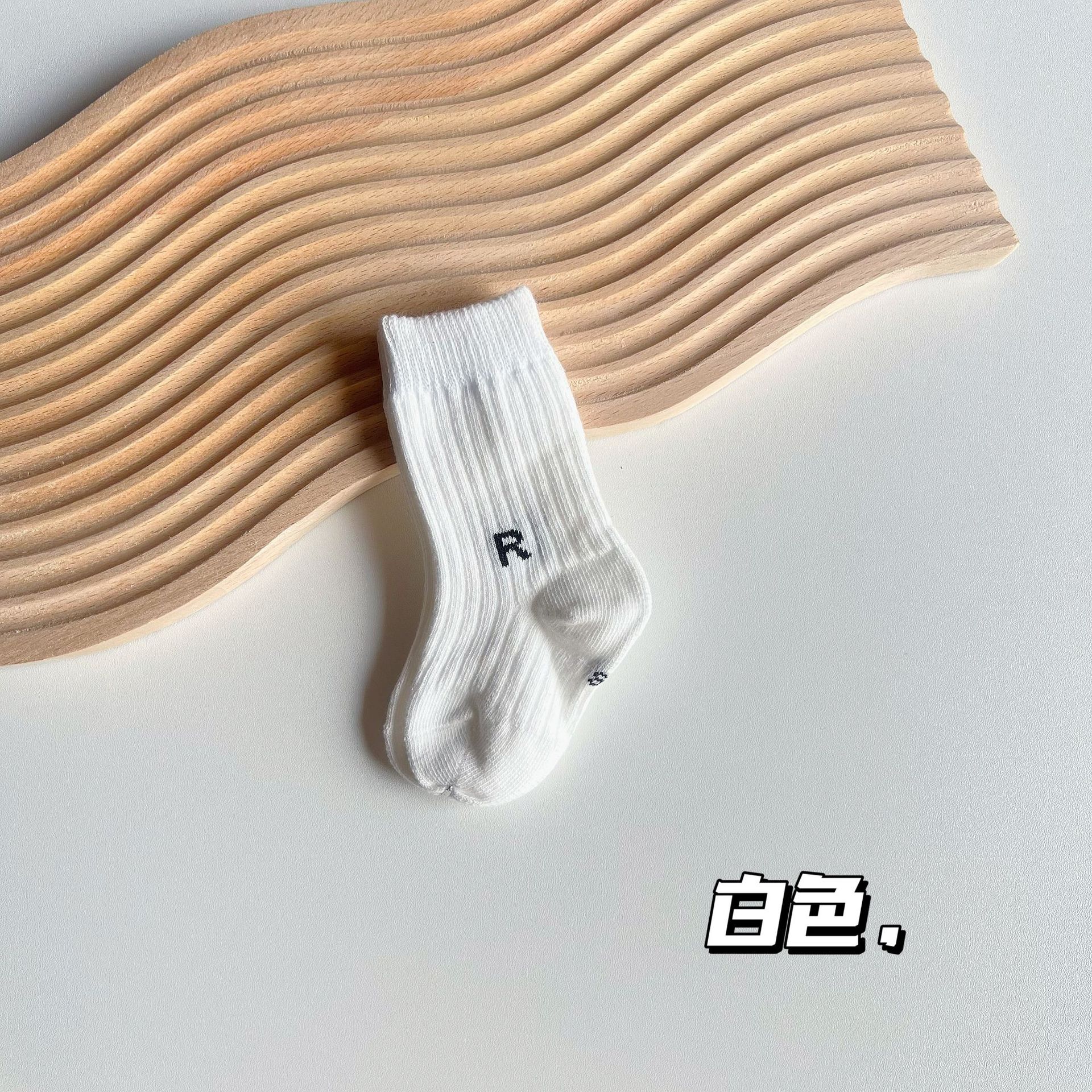 23 봄과 가을 새로운 유행 양말 R 라벨 중간 튜브 어린이 면 양말 스포츠 스타일 세로 스트립 중간 튜브 양말 캐주얼 학생 양말