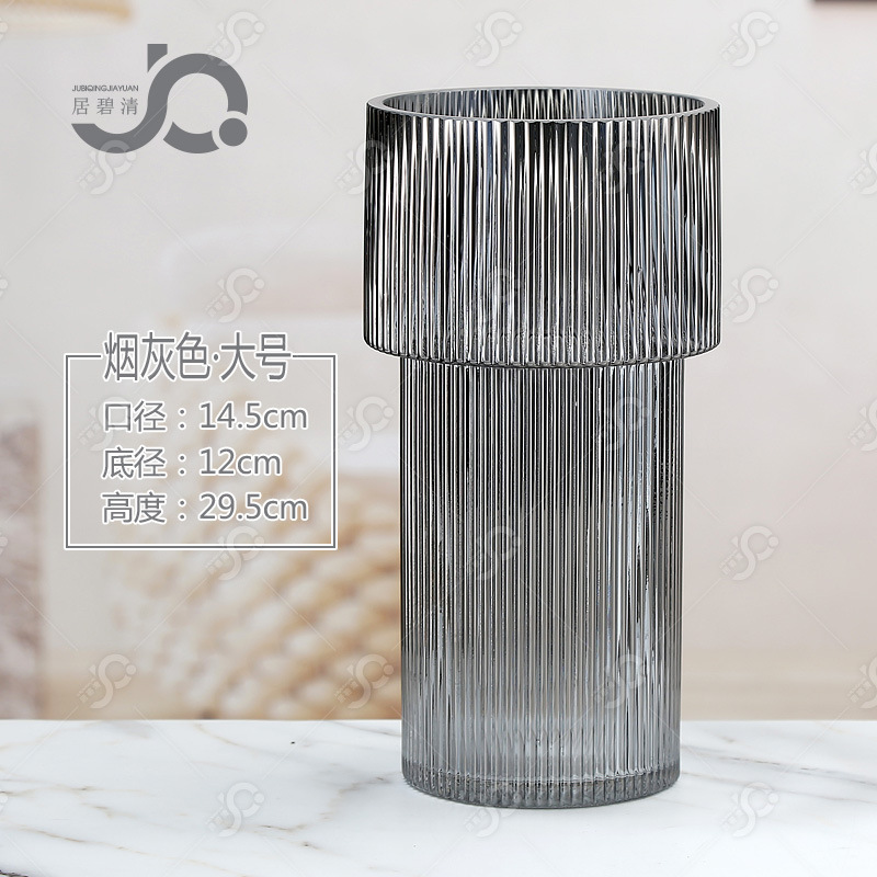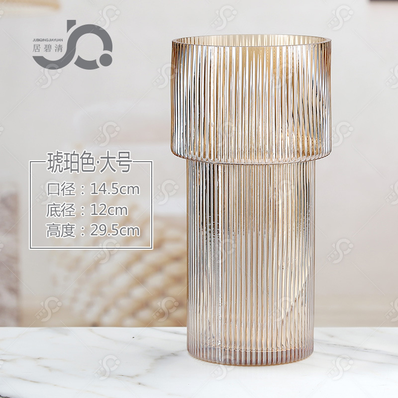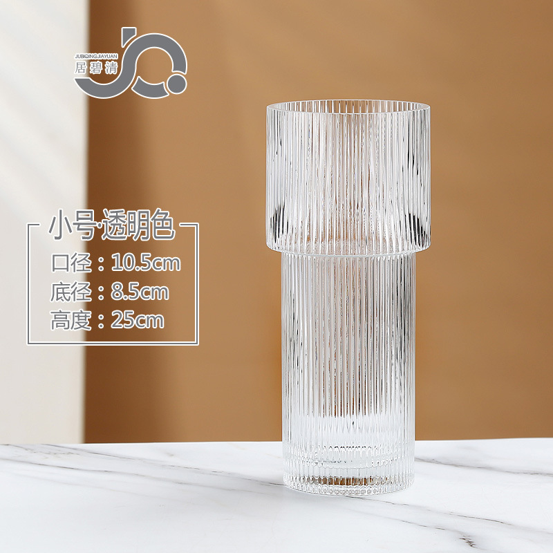 유럽의 간단한 거실 부드러운 가구 홈 유리 장식품 꽃 수경 꽃꽂이 수직 패턴 토치 플랫 실린더 투명 꽃병스토어 가기