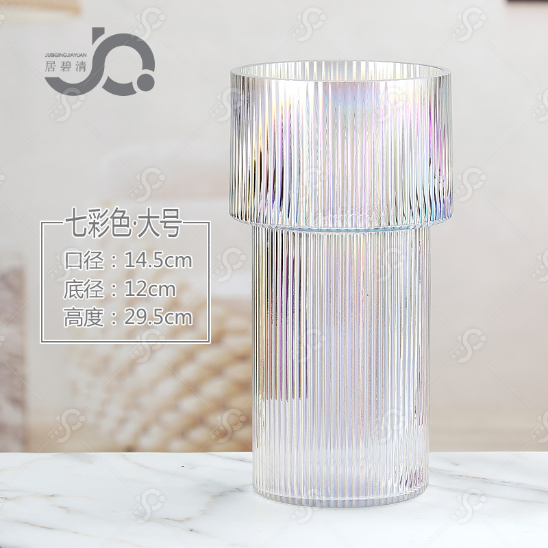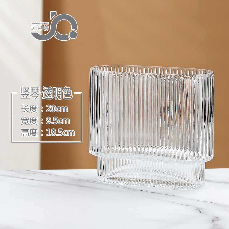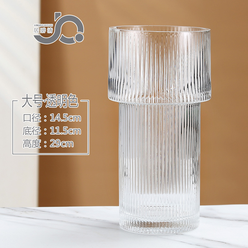 유럽의 간단한 거실 부드러운 가구 홈 유리 장식품 꽃 수경 꽃꽂이 수직 패턴 토치 플랫 실린더 투명 꽃병
