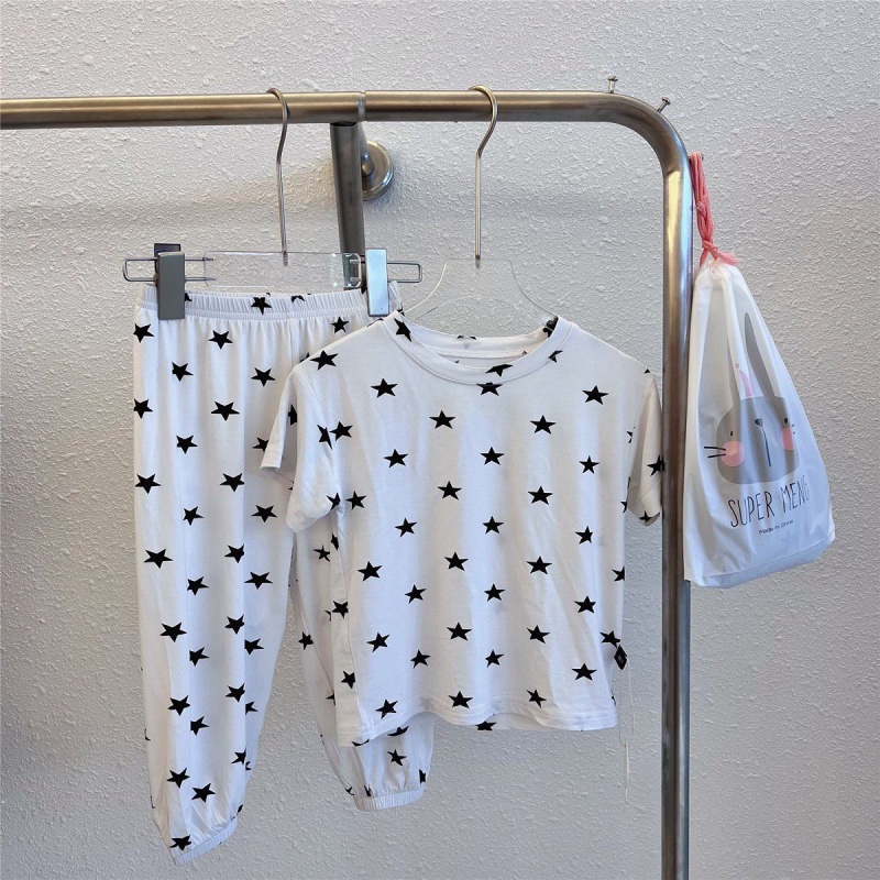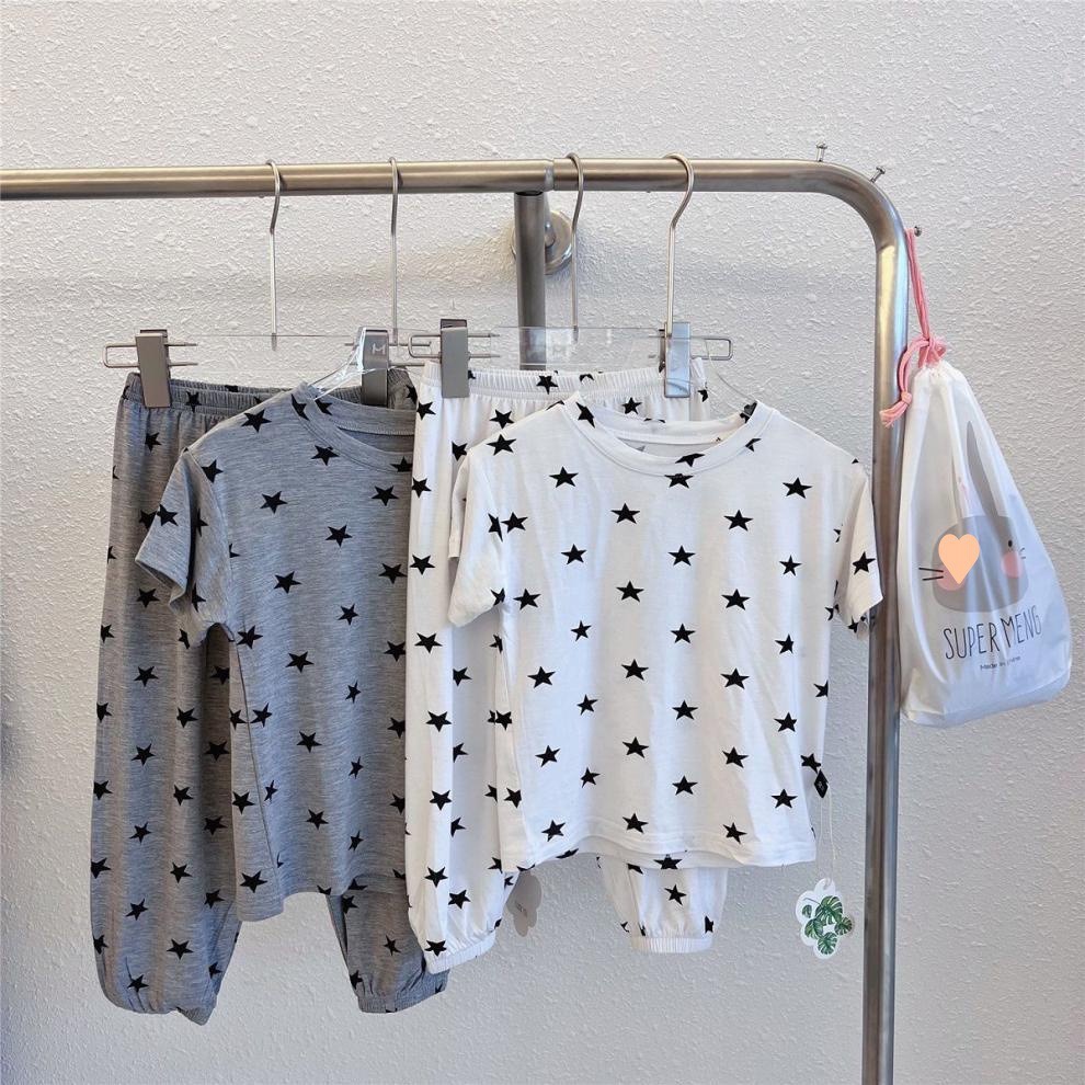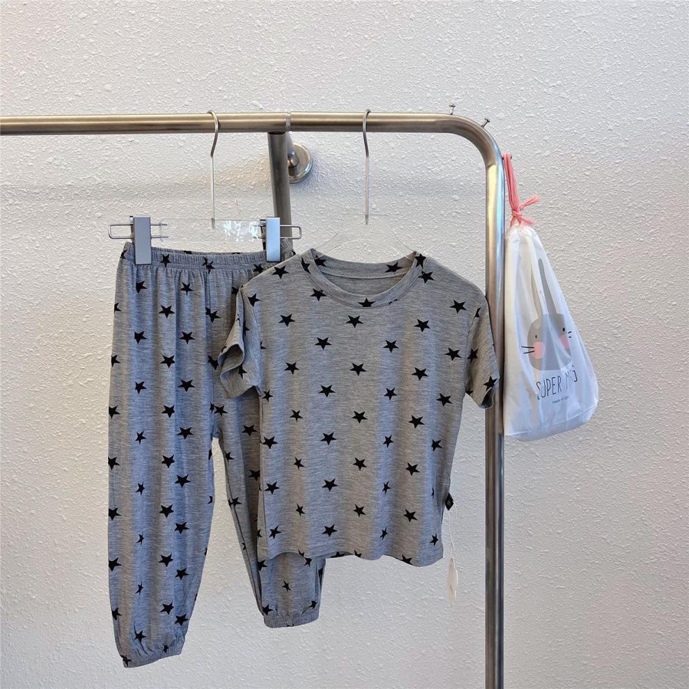 소년 모달 가정복 세트 2023 새로운 어린이 잠옷 아기 소녀를위한 여름 얇은 에어컨 의류스토어 가기