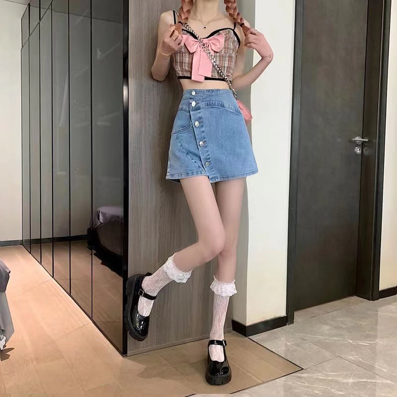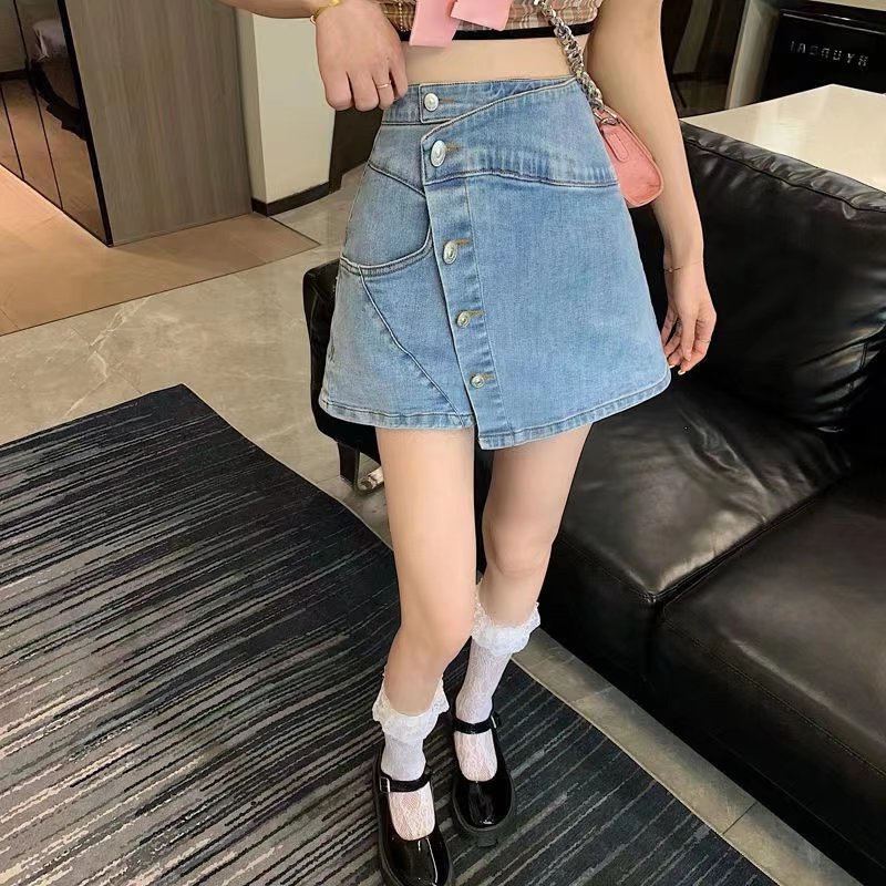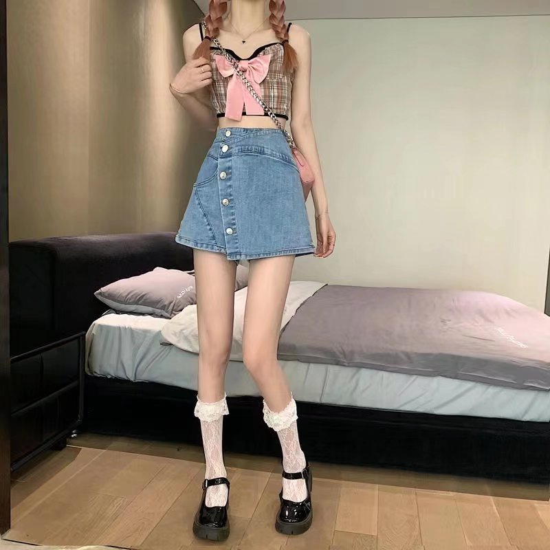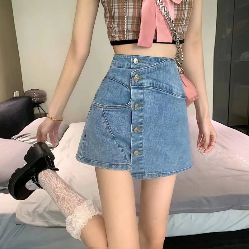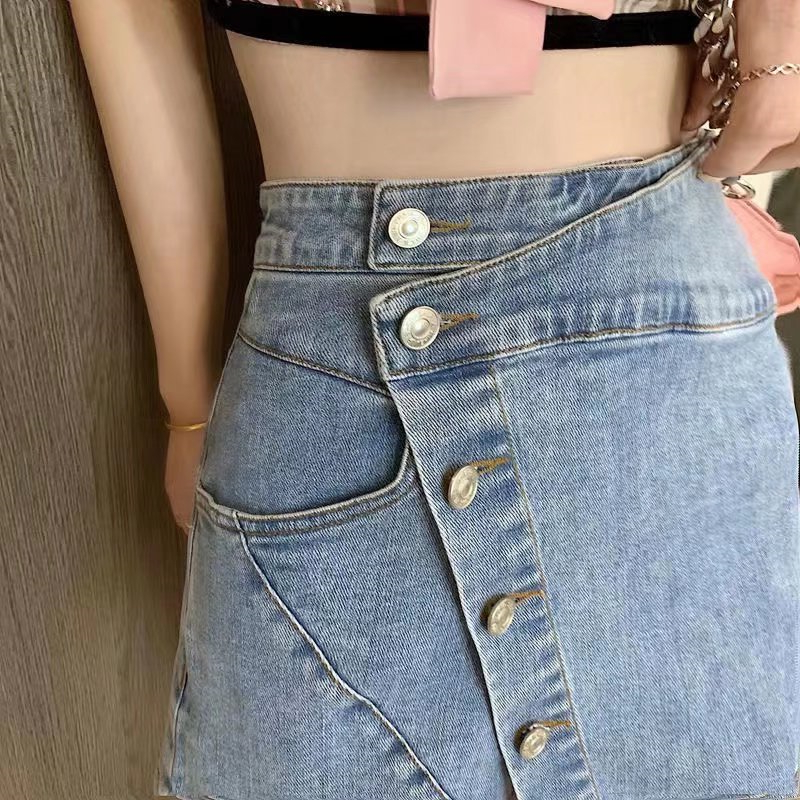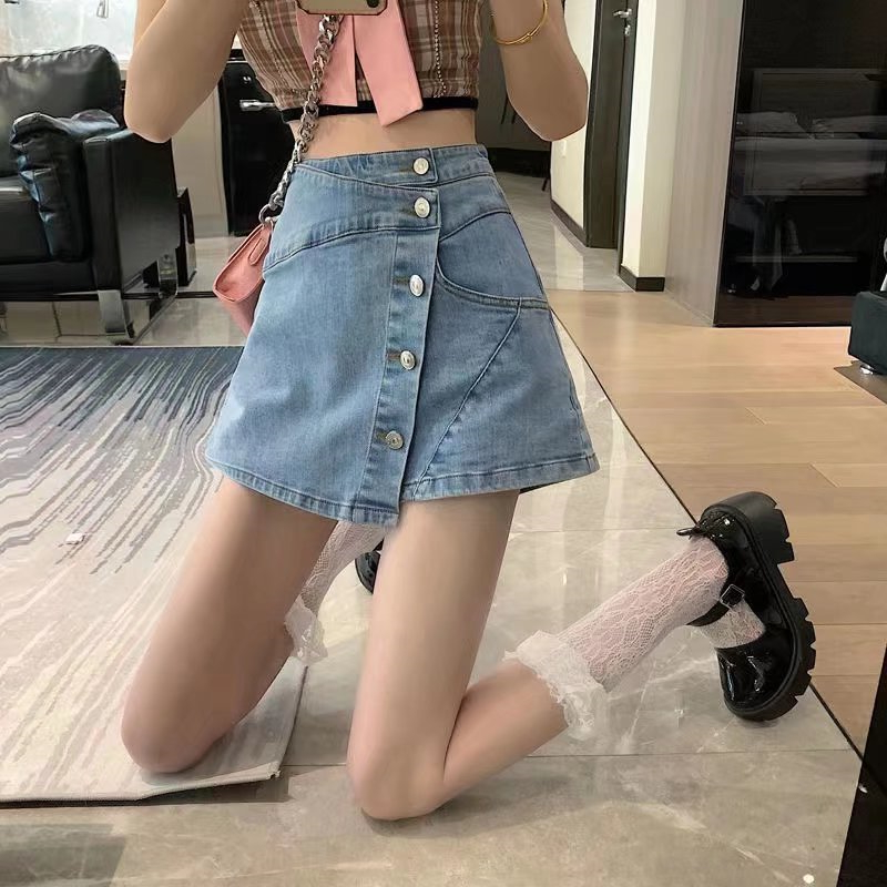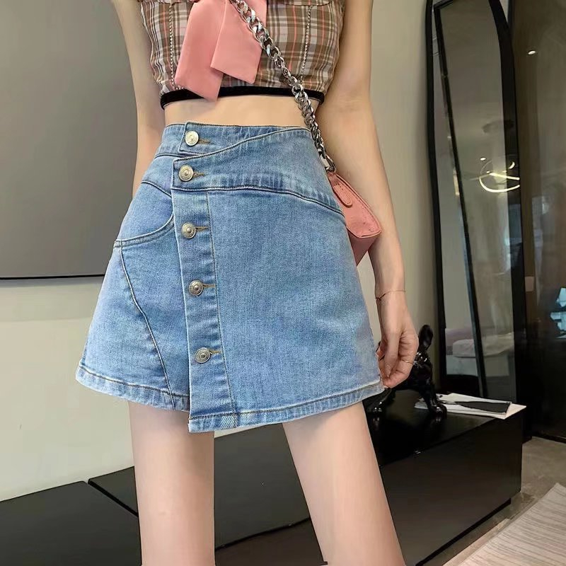 디자인 센스 틈새 청바지 여성의 여름 신상품 플러스 사이즈 통통녀 불규칙한 슬림 A 자형 와이드 레그 짧은 핫 팬츠 유행스토어 가기