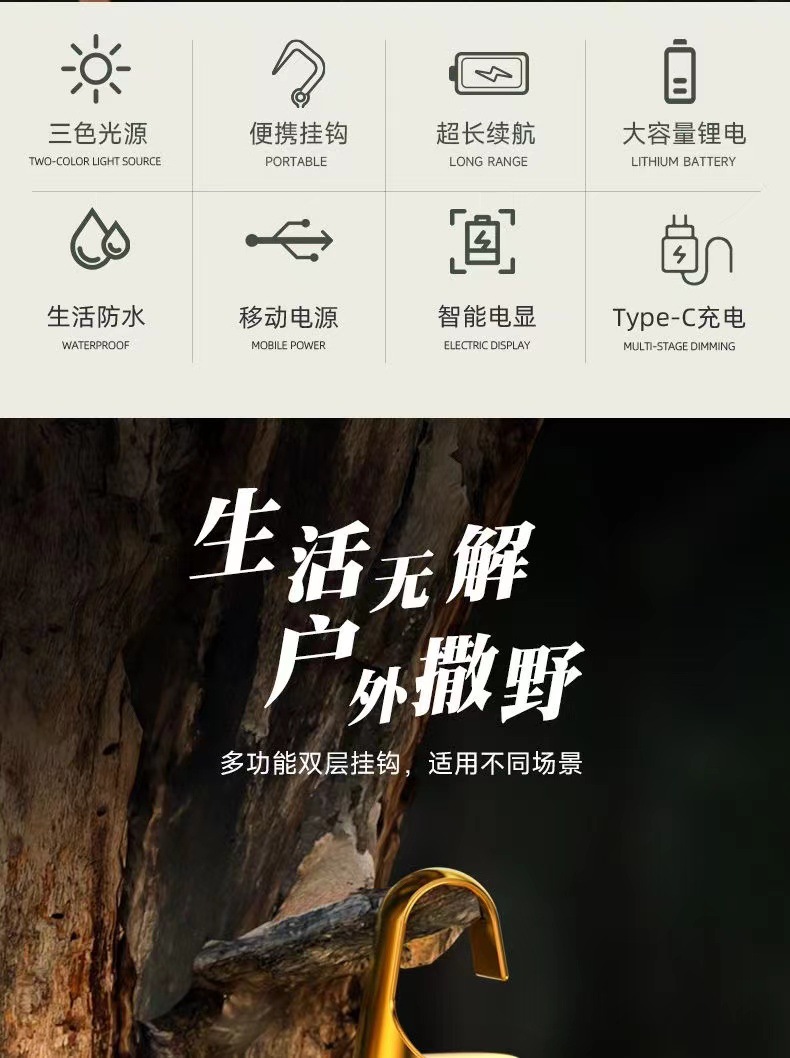 새로운 크로스 보더 레트로 교수형 조명 캠핑 USB 충전식 led 텐트 야외 랜턴 휴대용 장비 캠핑 조명 도매