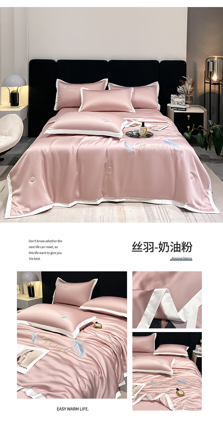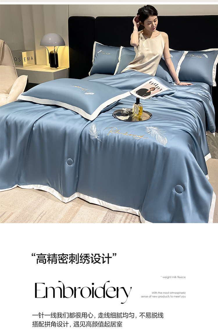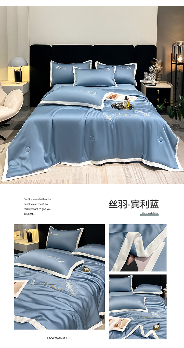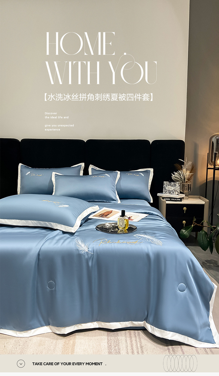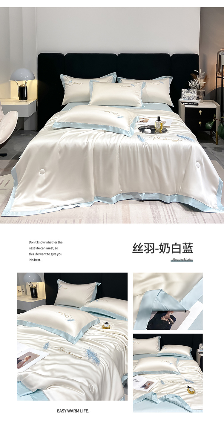 가벼운 럭셔리 아이스 실크 시원한 여름 퀼터 4 피스 단색 자수 에어컨 퀼터 기계 빨 여름 학생 기숙사 퀼터 도매